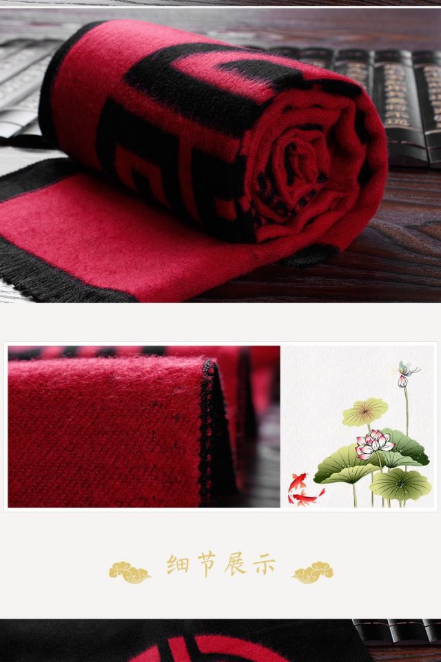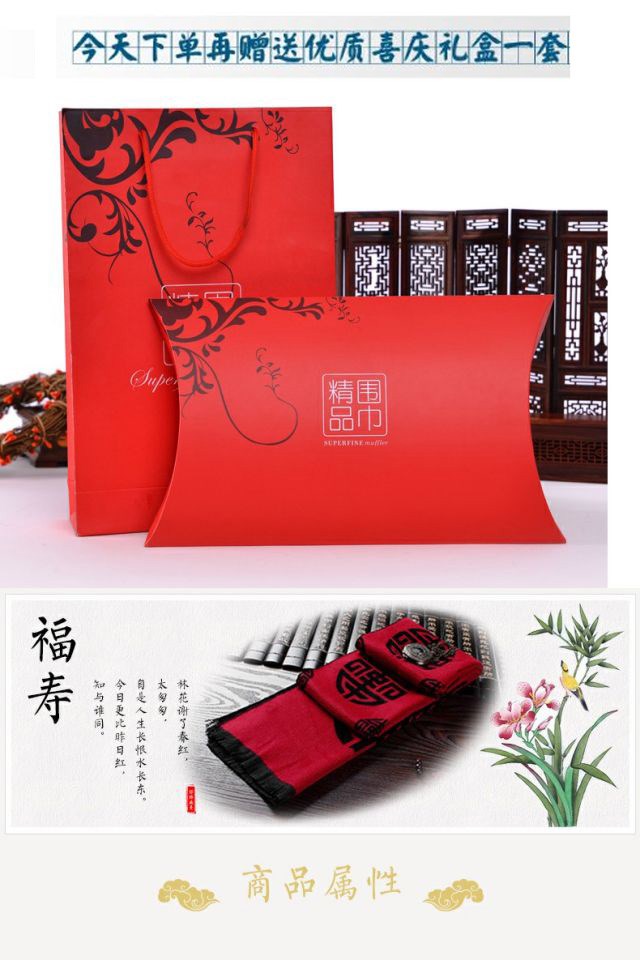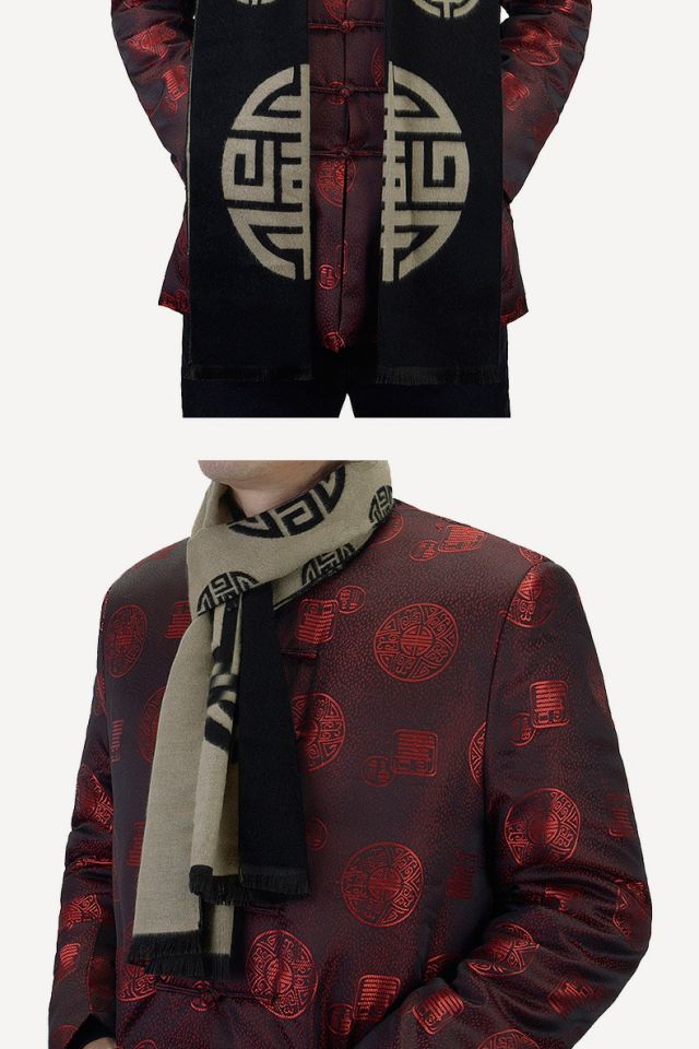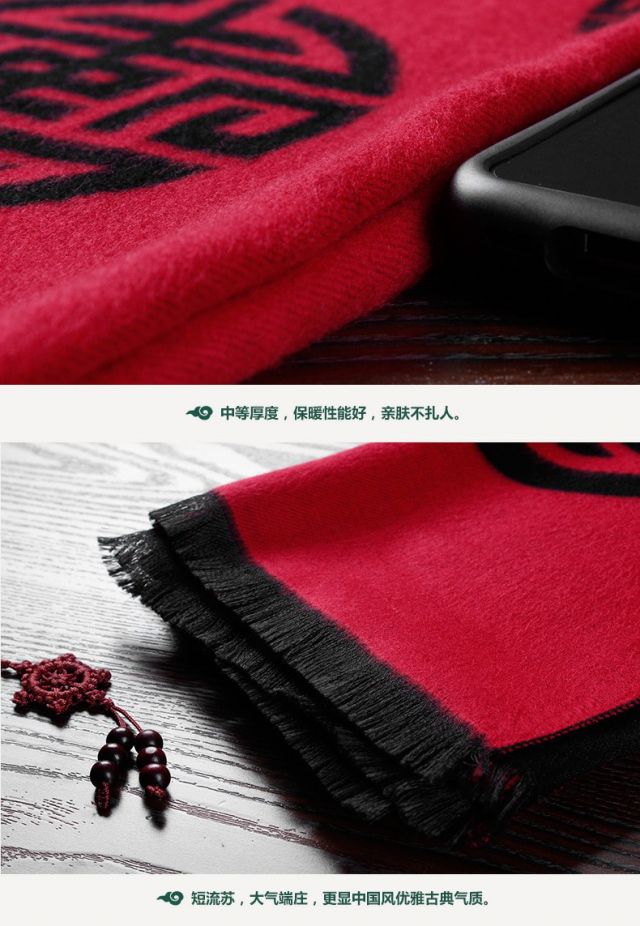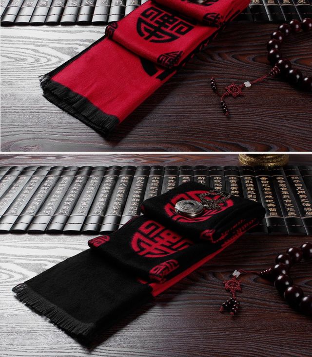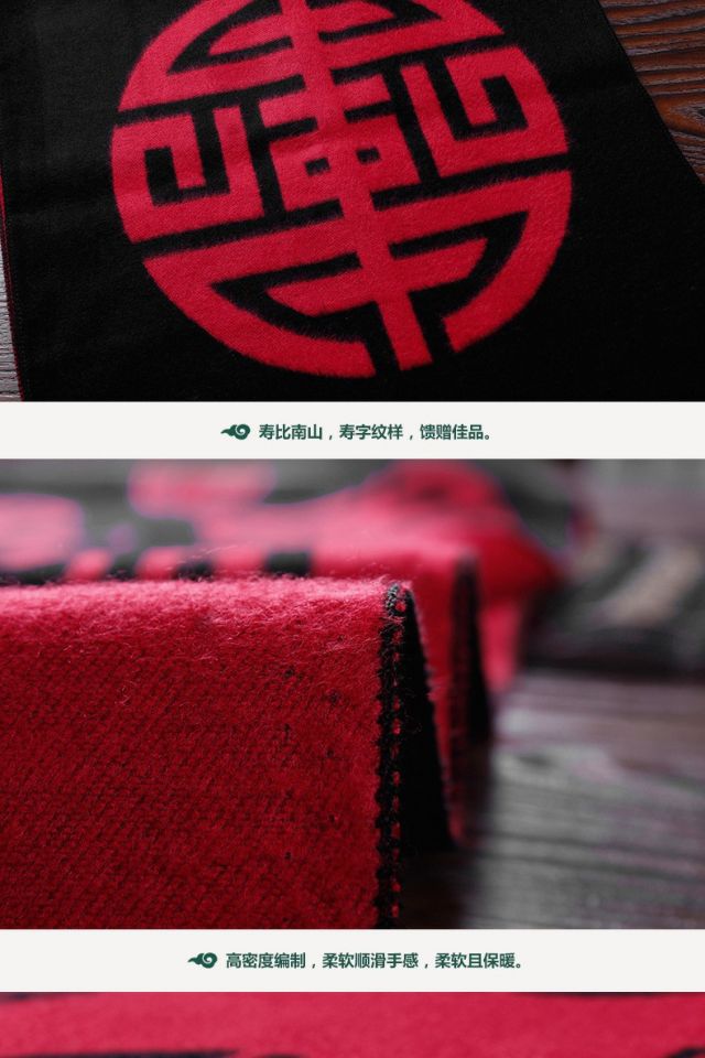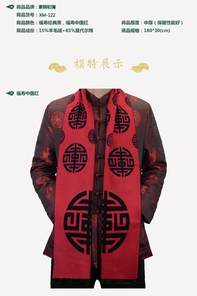 Sujin Chulan ethnic style men's red scarf birthday blessing word grandfather old lady Chinese banquet scarf autumn and winter blessing and longevity classic black