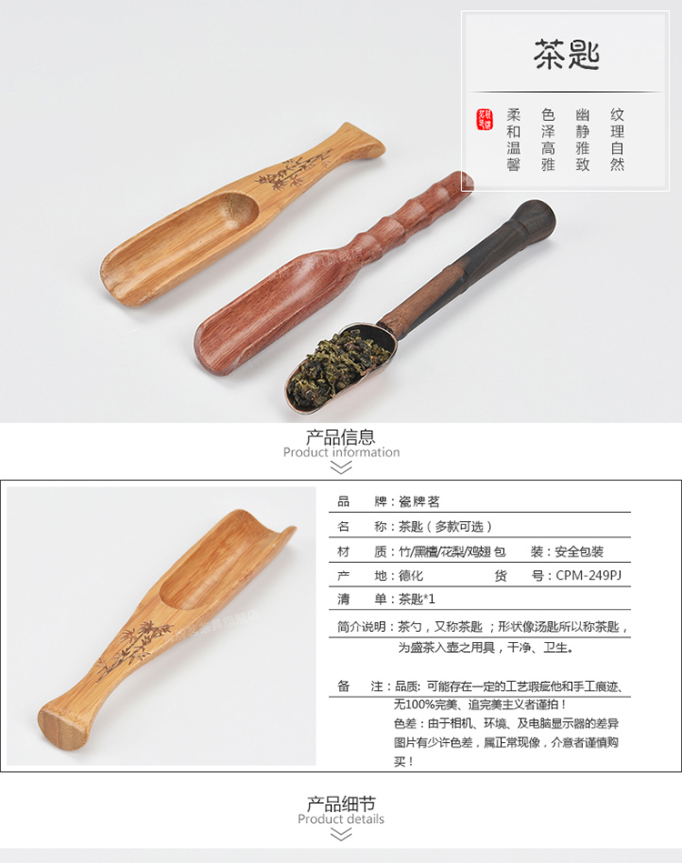 Porcelain brand tea ebony alloy tea spoon tea spoon rosewood tea spoon kung fu tea set tea ceremony accessories summer bamboo - bamboo tea spoon