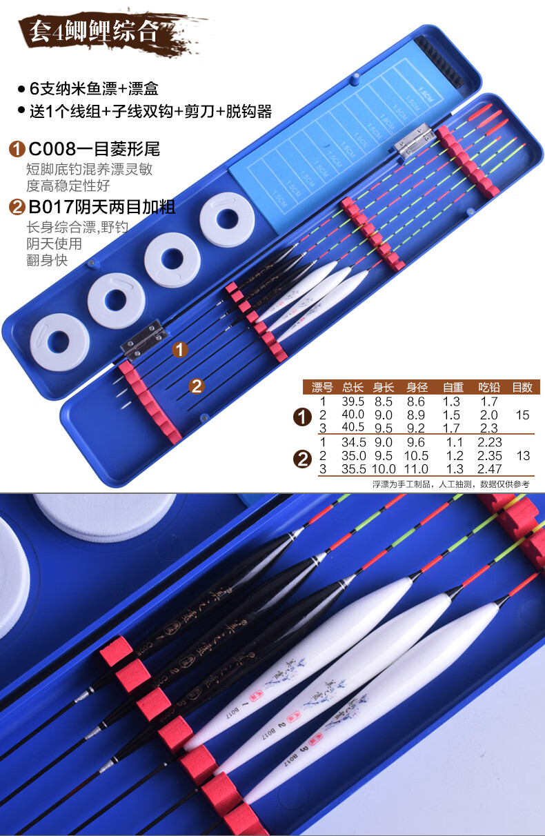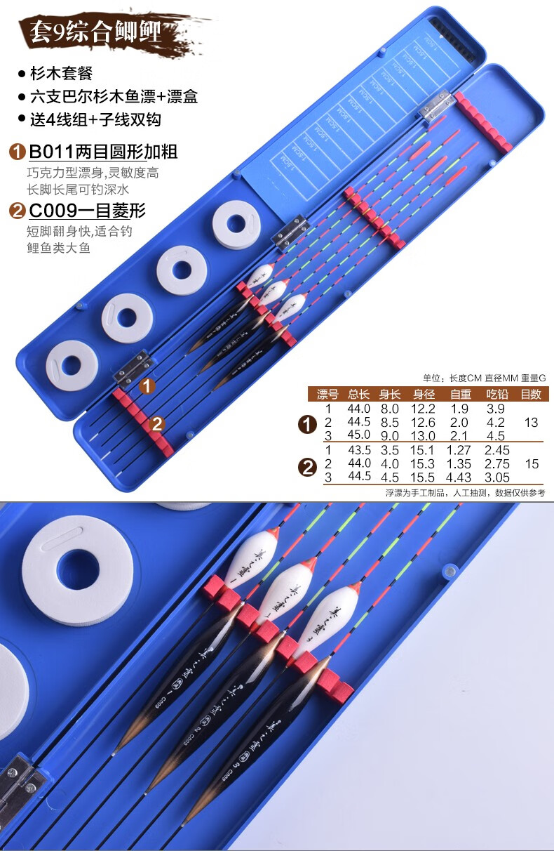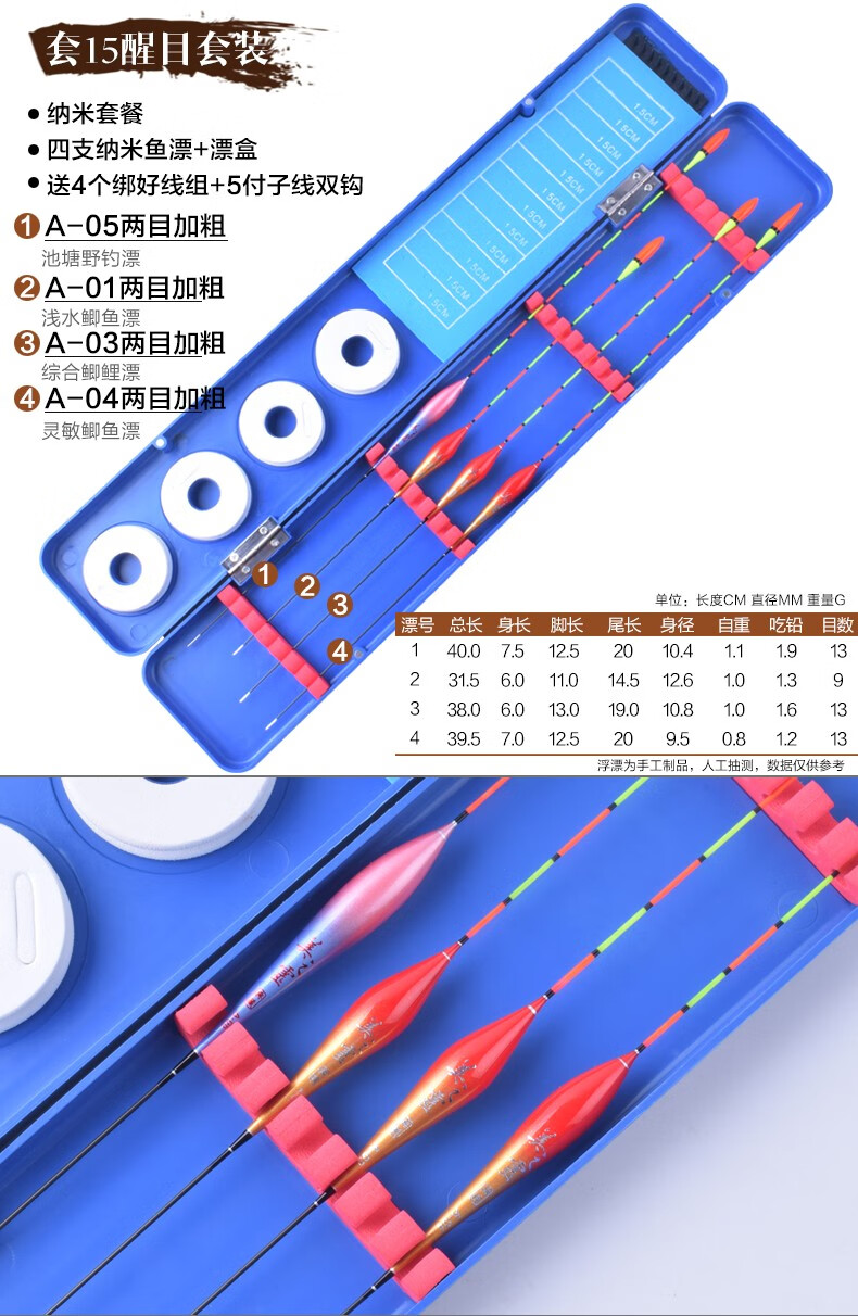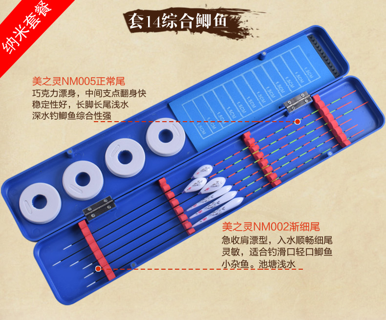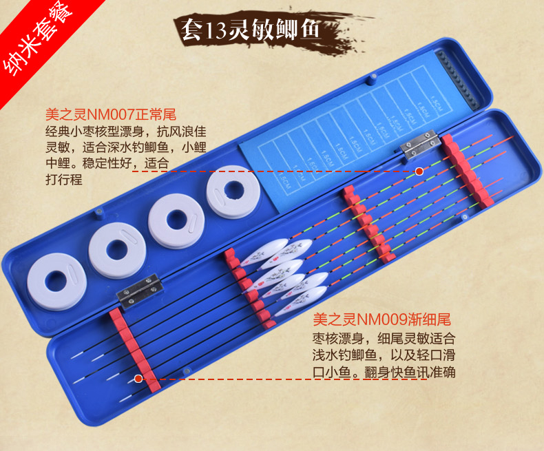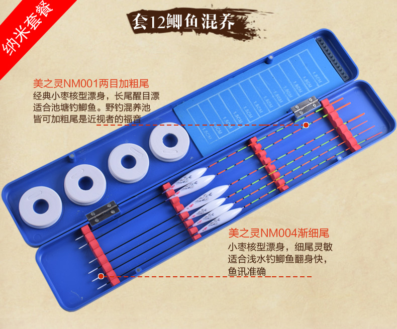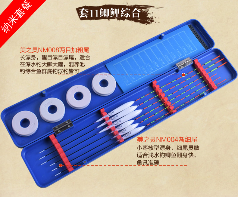 Meizhiling fish float set multi-functional package float date core type buoy platform fishing crucian carp float plus thick tail float box set fishing gear set ten crucian carp comprehensive