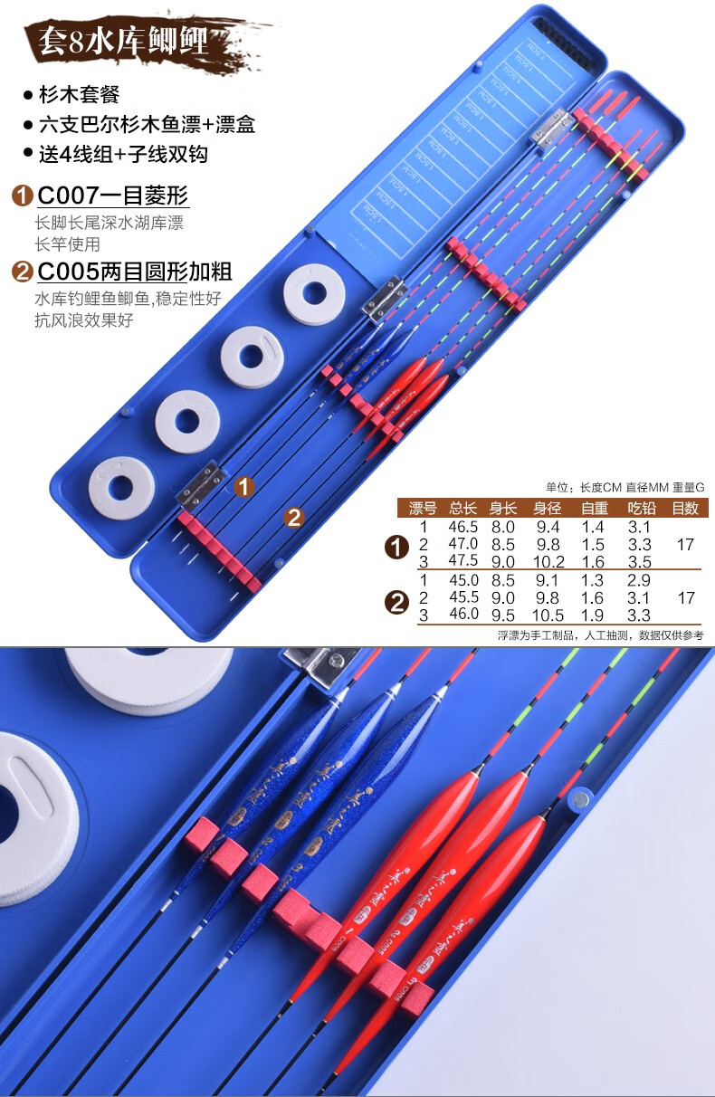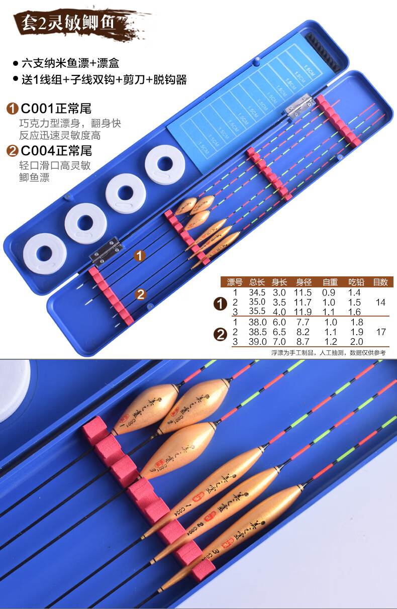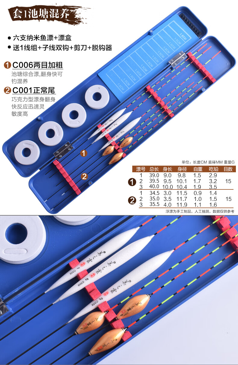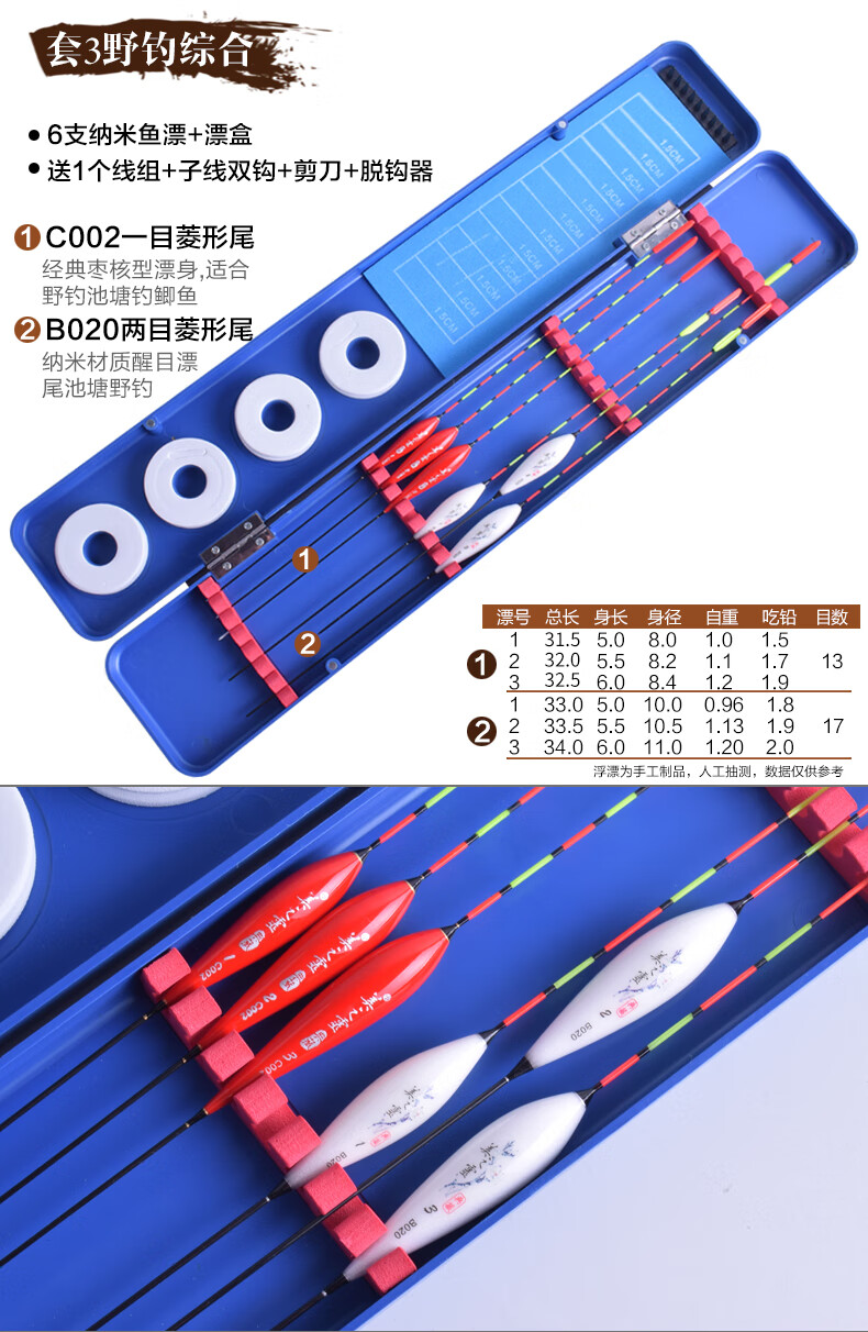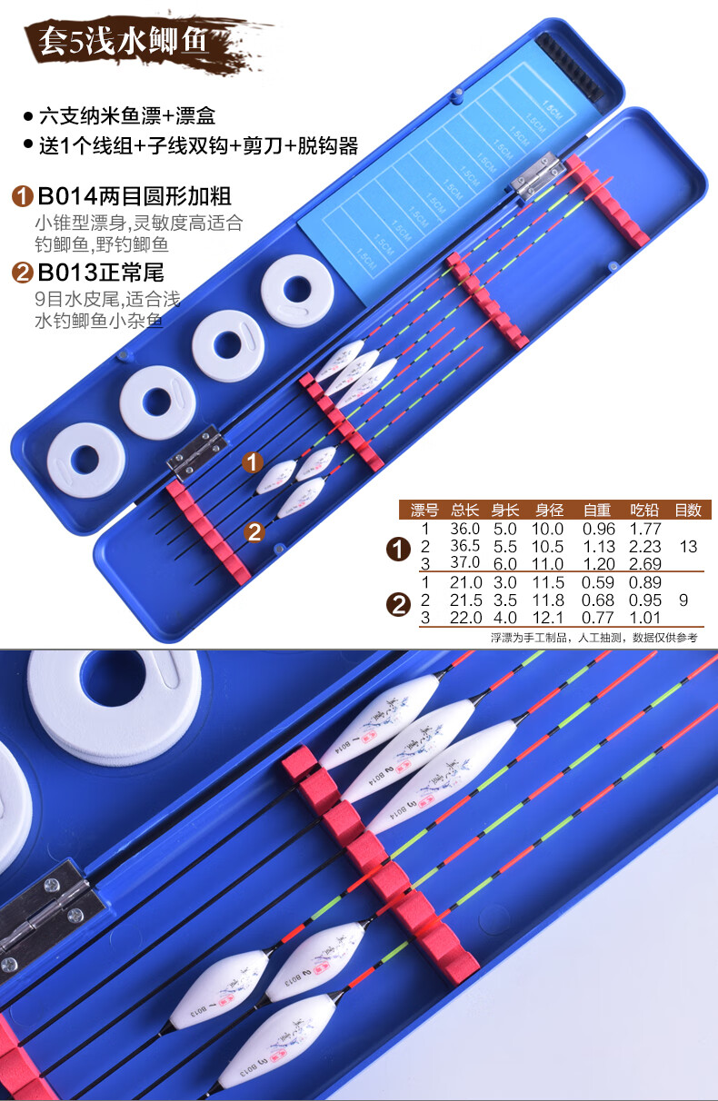 Meizhiling fish float set multi-functional package float date core type buoy platform fishing crucian carp float plus thick tail float box set fishing gear set ten crucian carp comprehensive