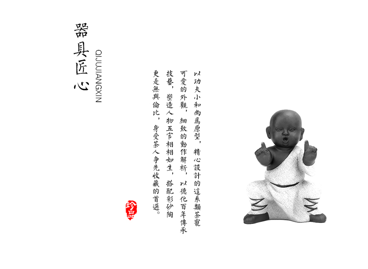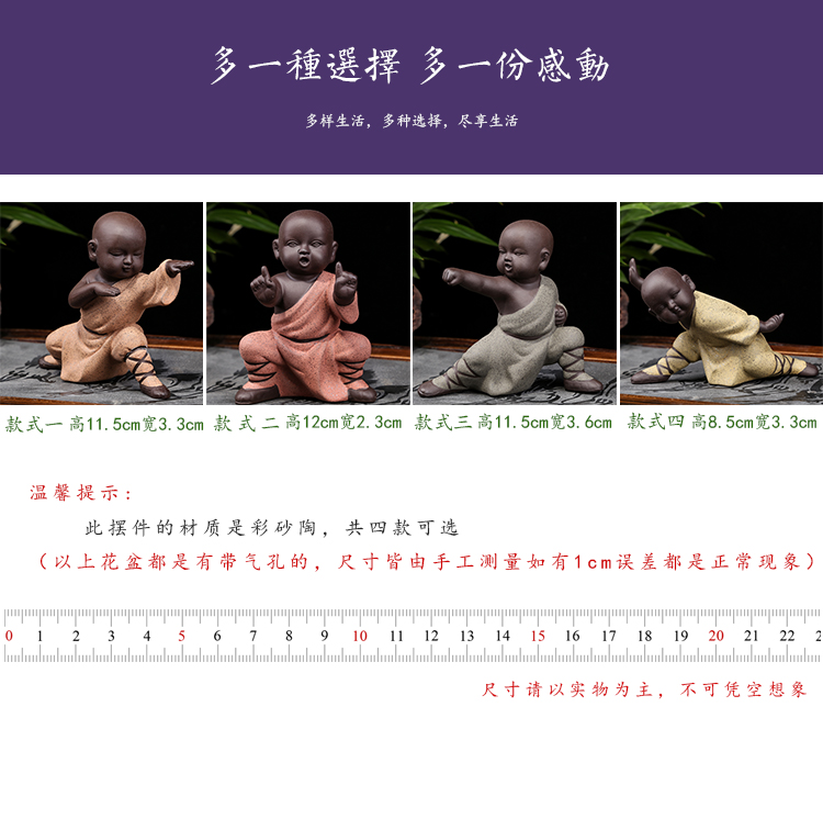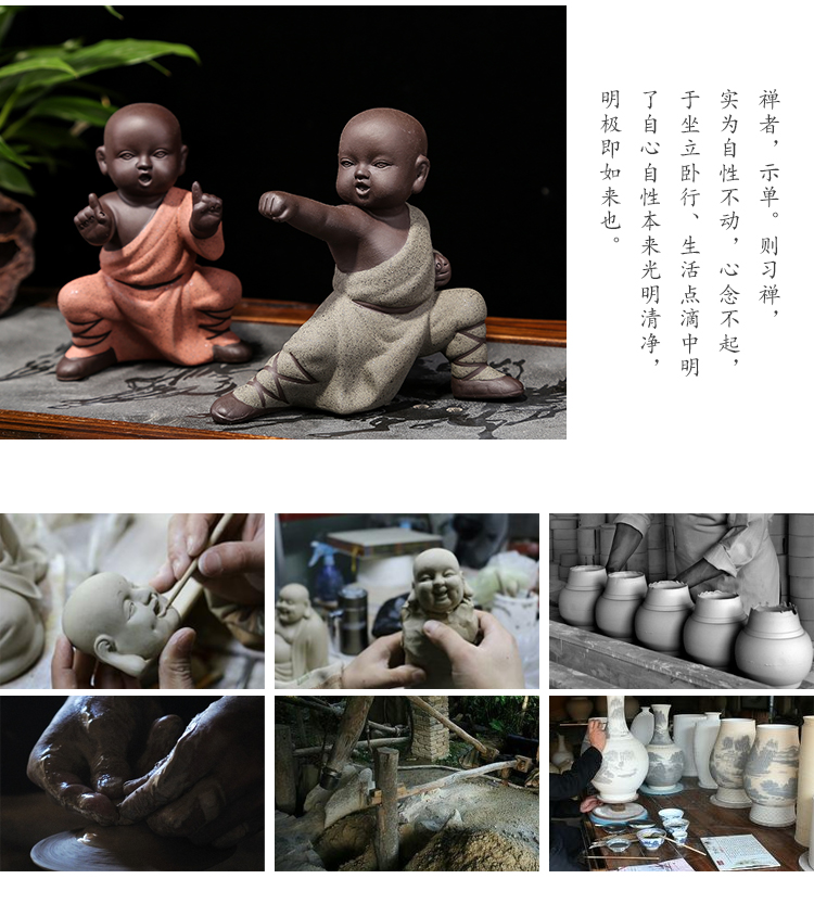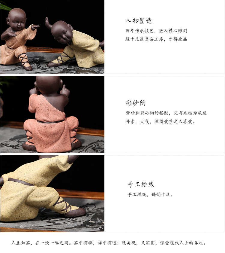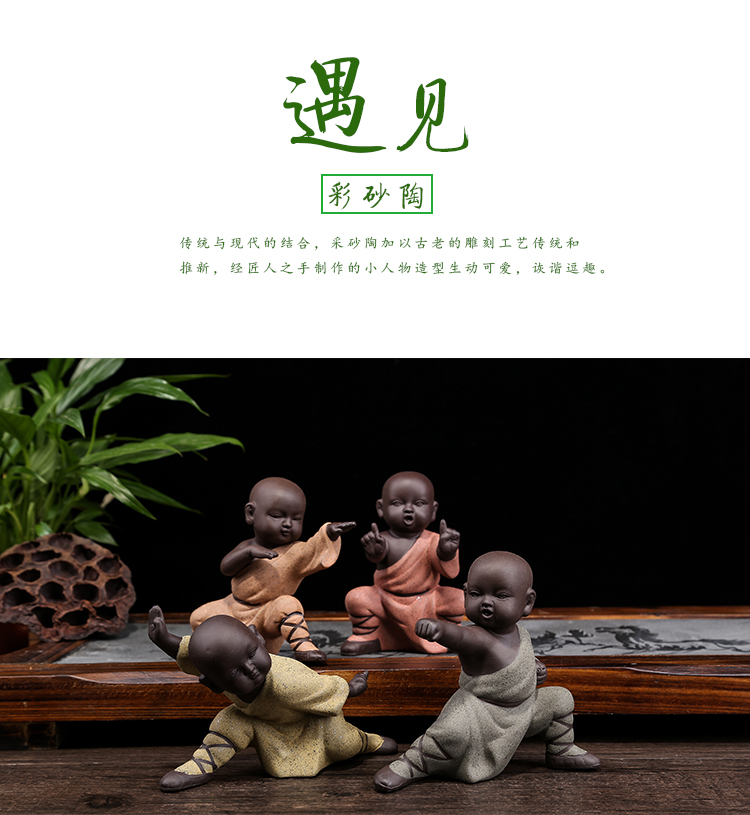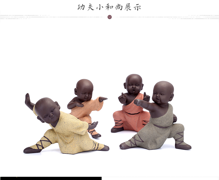 Xiangye Fine Colored Sand Pottery Purple Clay Little Monk Novice Kung Fu Boy Tea Pet Creative Home Decoration Ornament Kung Fu Boy Complete Set of 4