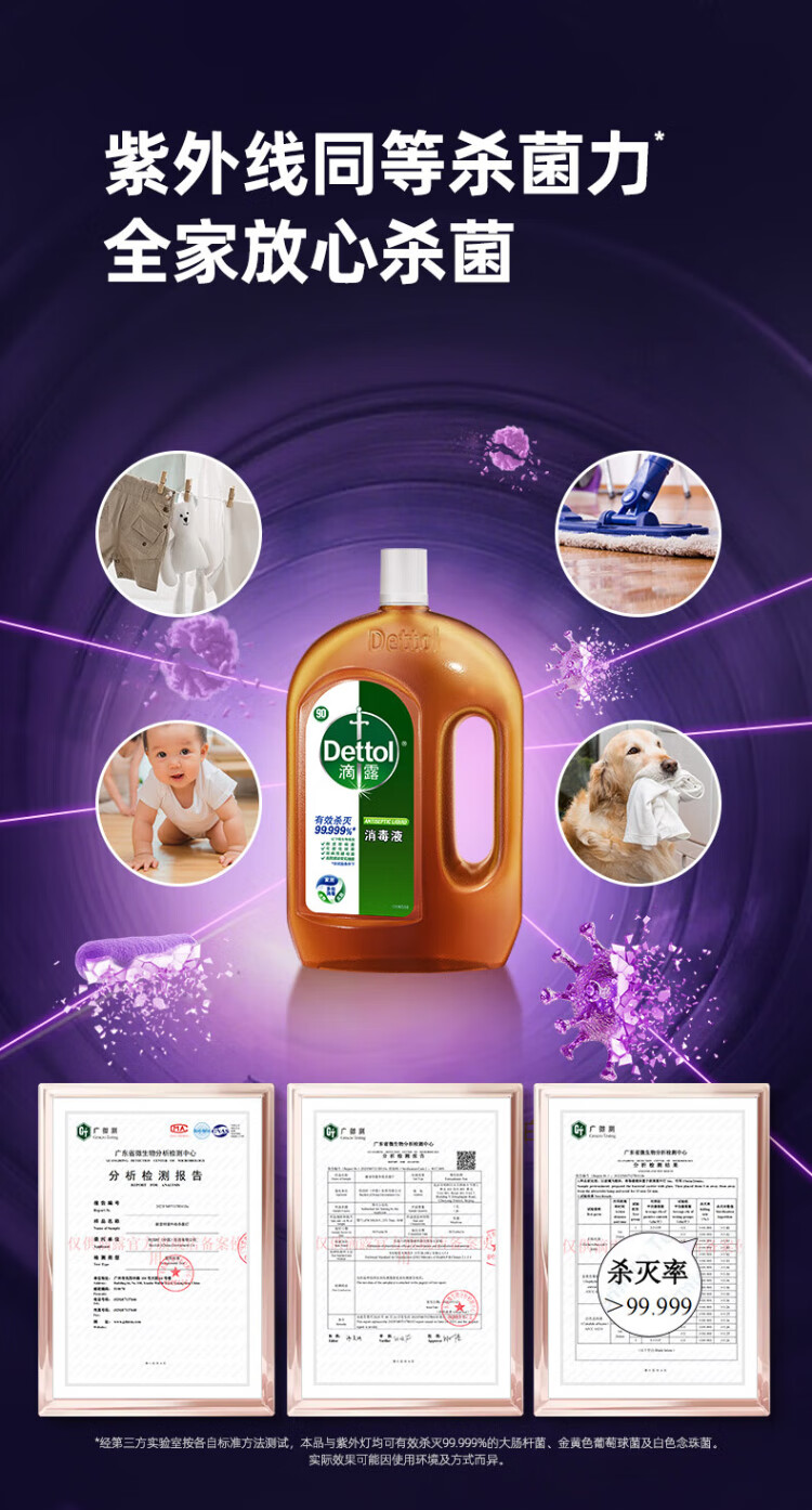 Dettol Disinfectant, Disinfectant Water, Clothing Sterilizer, Inactivate H3N2 Influenza Virus, Sterilize and Remove Mites, Non-84 Alcohol, Classic Pine 1.8L 2 Bottles