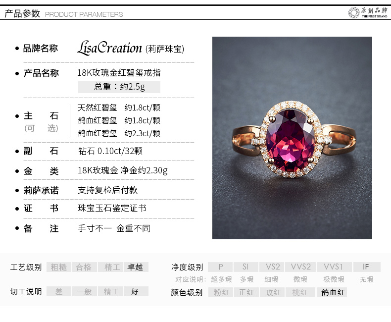 Lescreation Lisa Jewelry 2.3 carat pigeon blood rubellite diamond ring 18K gold colored gemstone ring women's South African diamond ring 1.8 carat rubellite ring