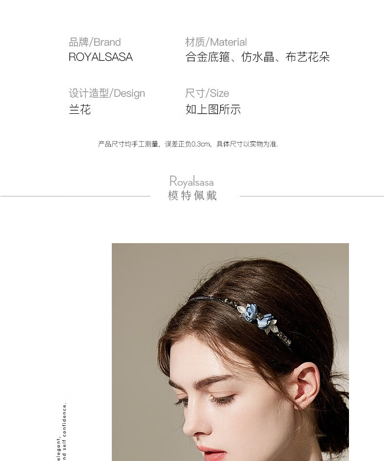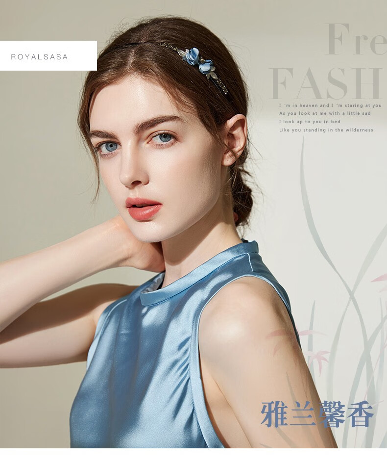 Royal sasa royal salsa hair accessories Japanese and Korean version of headband headband hairpin head flower artificial crystal silk satin flower ornaments elegant blue 607017