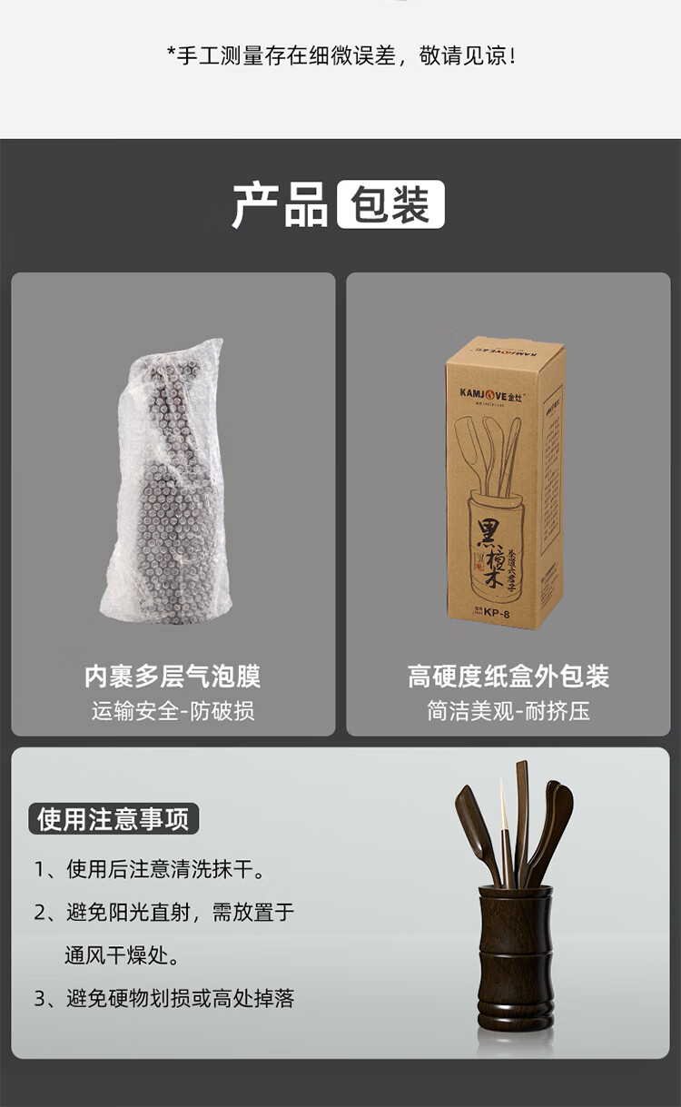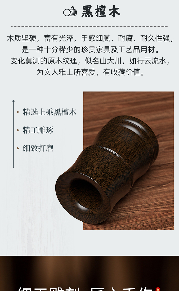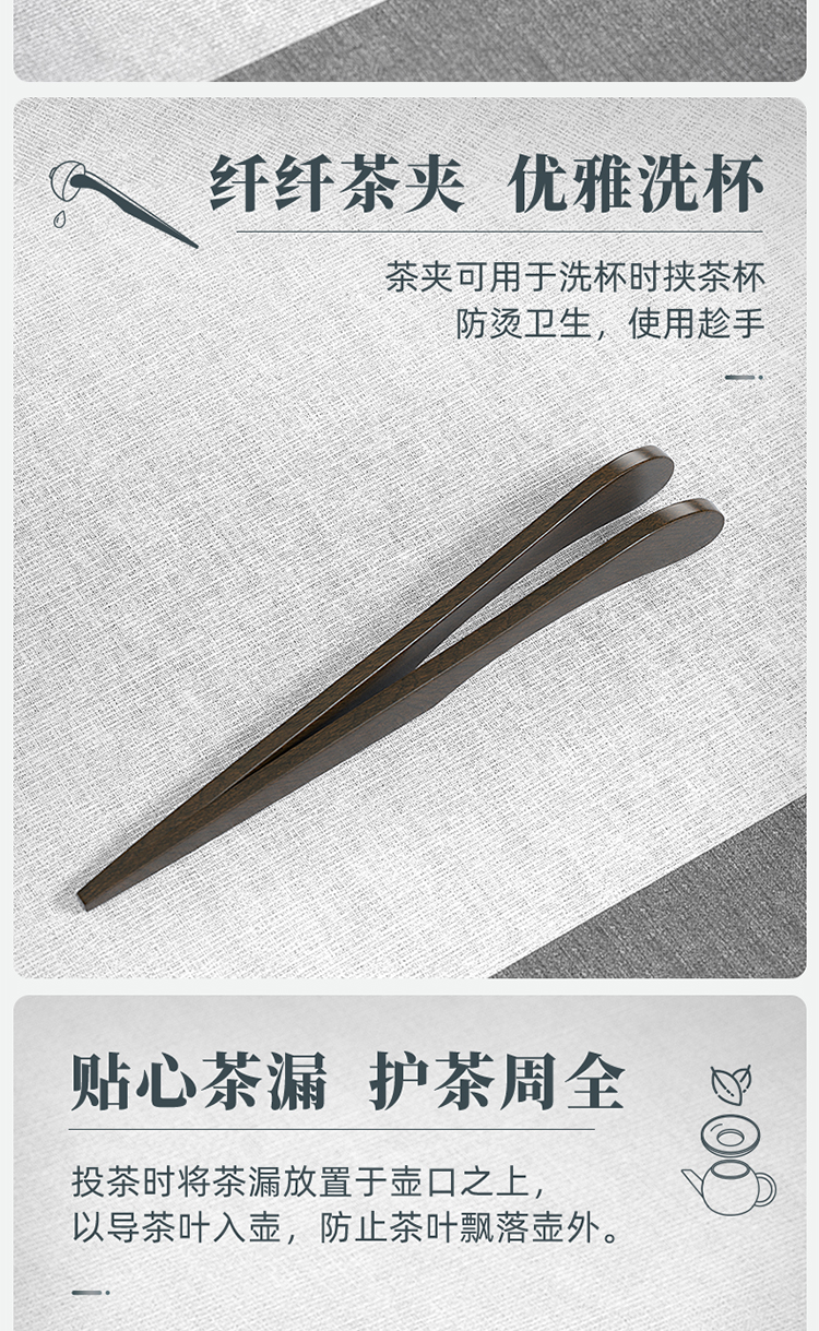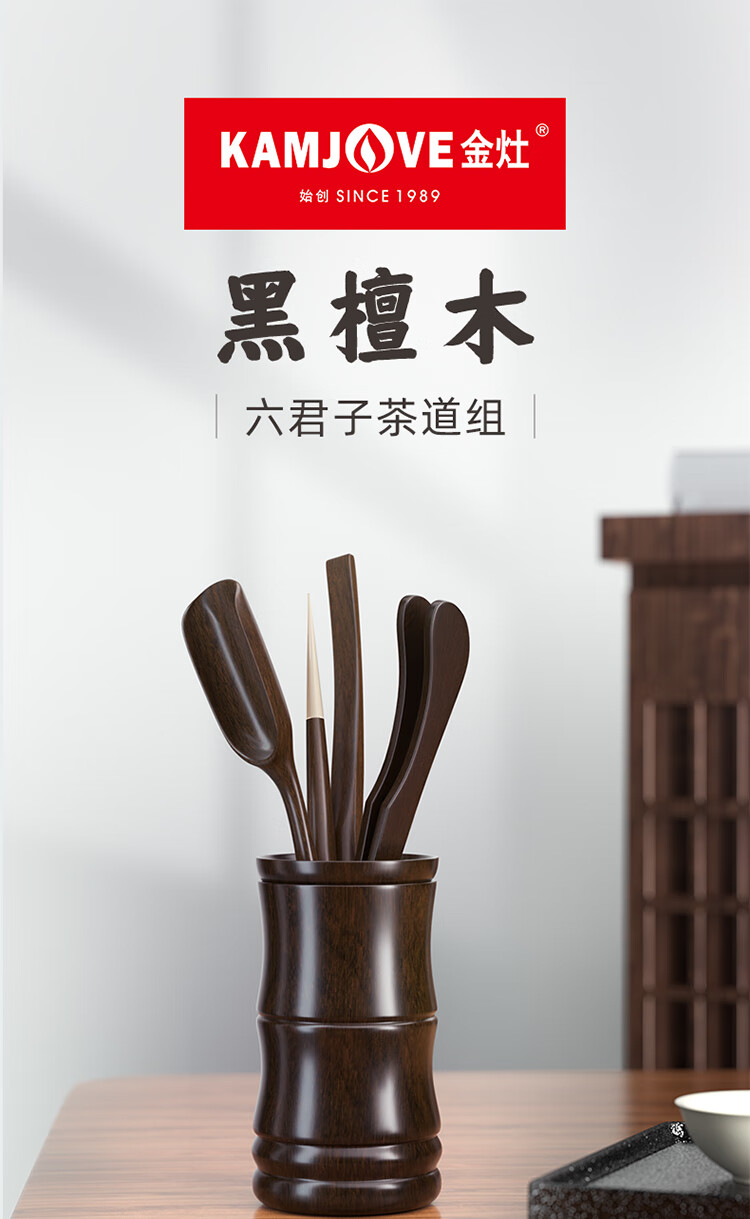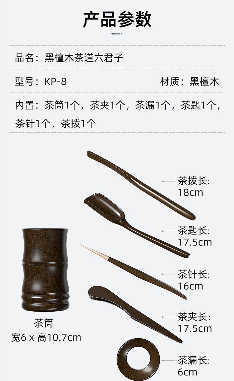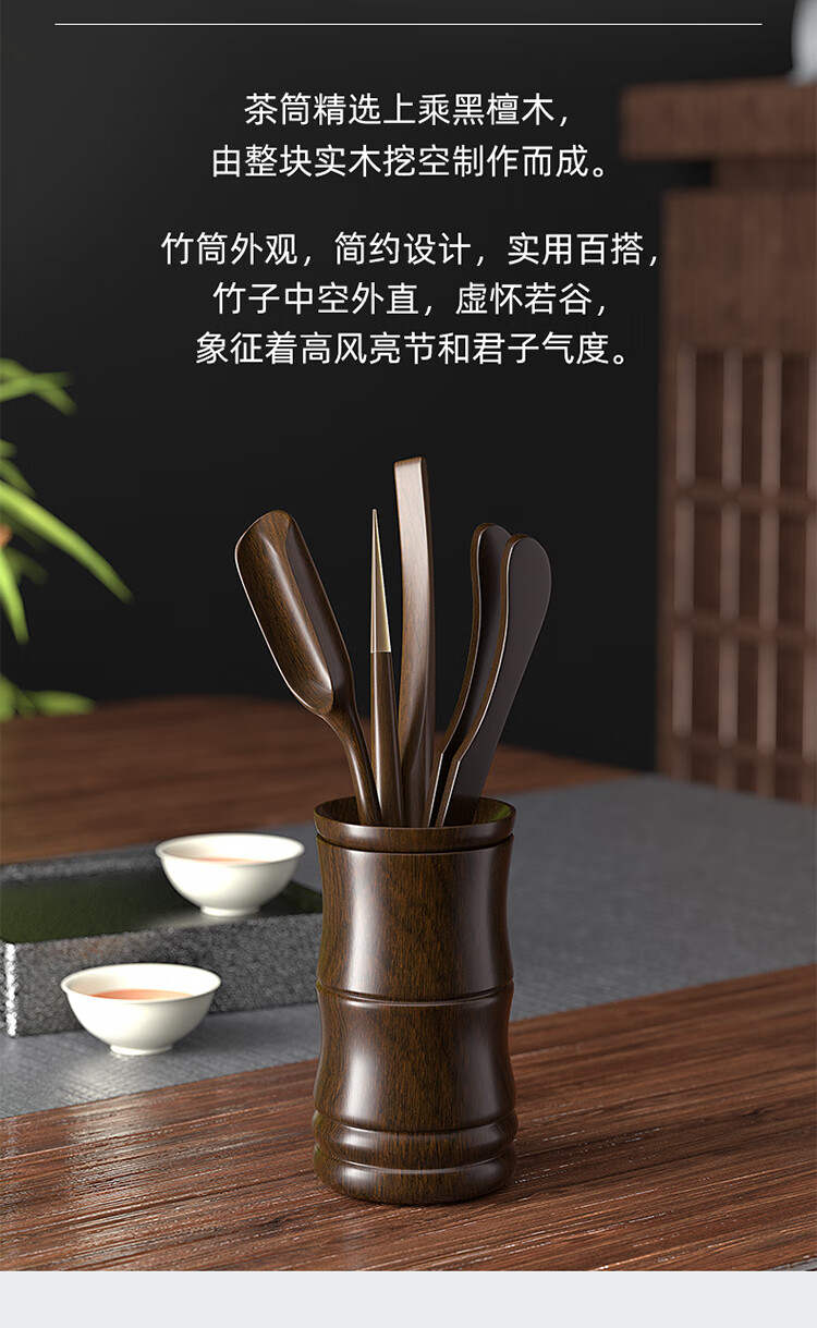 KAMJOVE Black Sandalwood Tea Ceremony Six Gentlemen Tea Clamp Cup Clamp Tea Drain Kung Fu Tea Accessories Set Bamboo Tube Shape KP-8