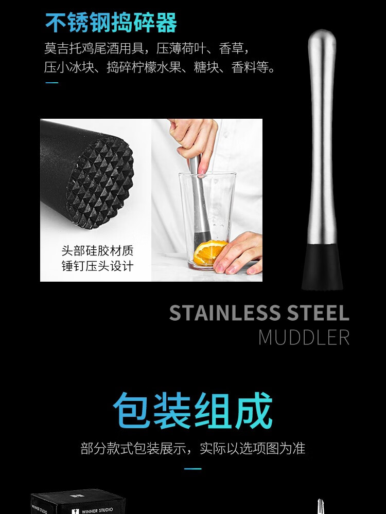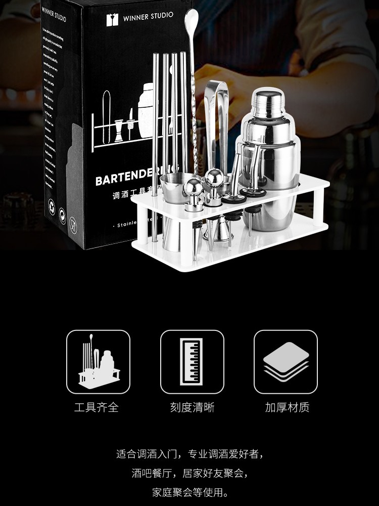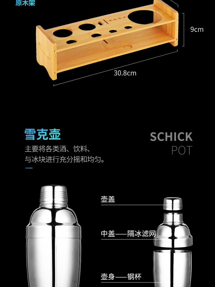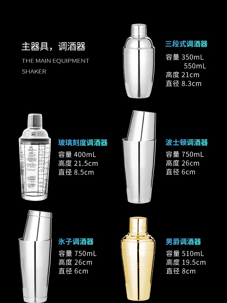 FEiNASi Japanese stainless steel shaker set cocktail shaker shaker ounce cup stirring stick shaker tool Japanese style 350ml-4 piece set