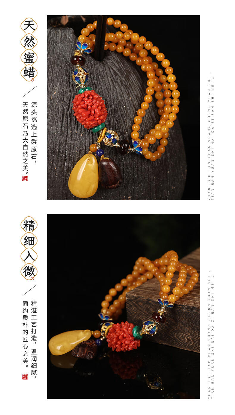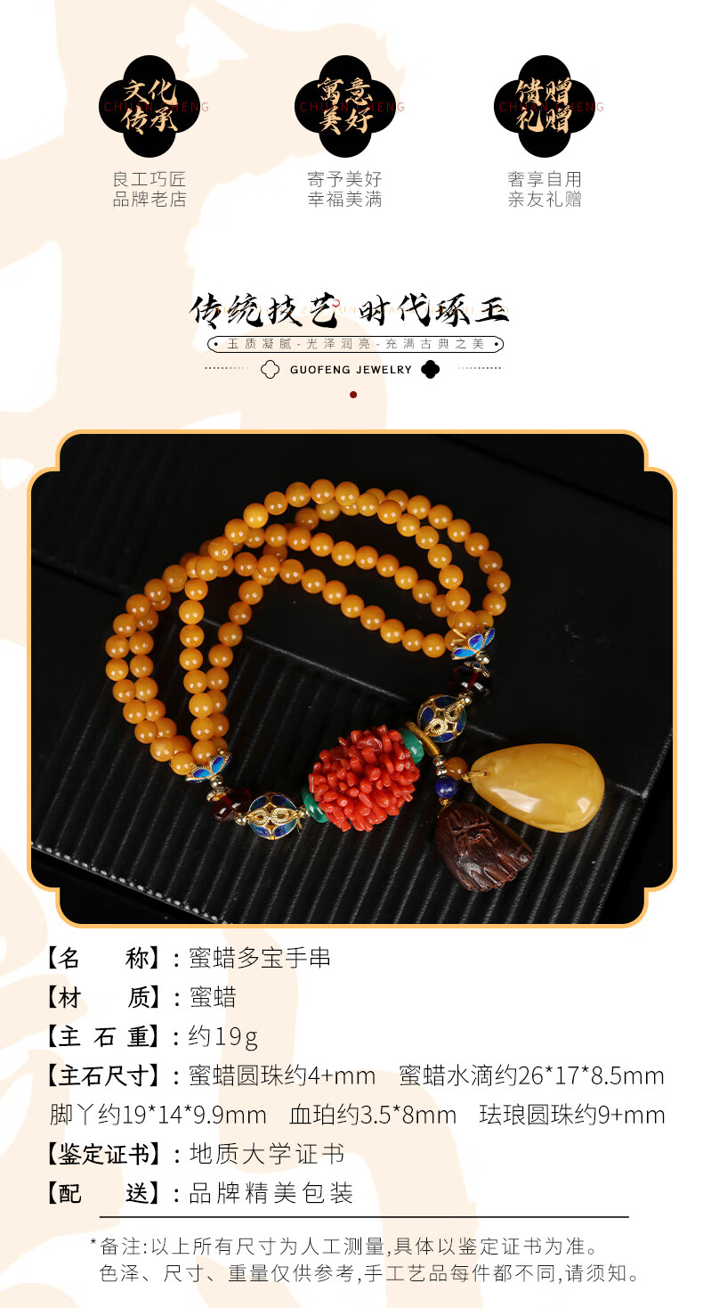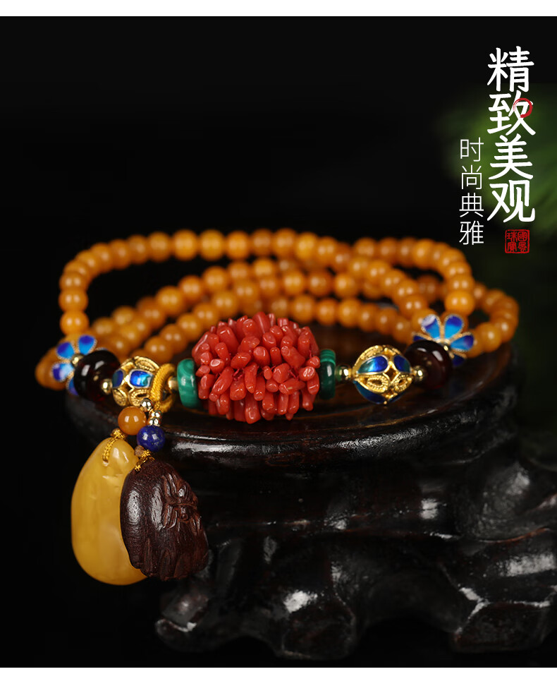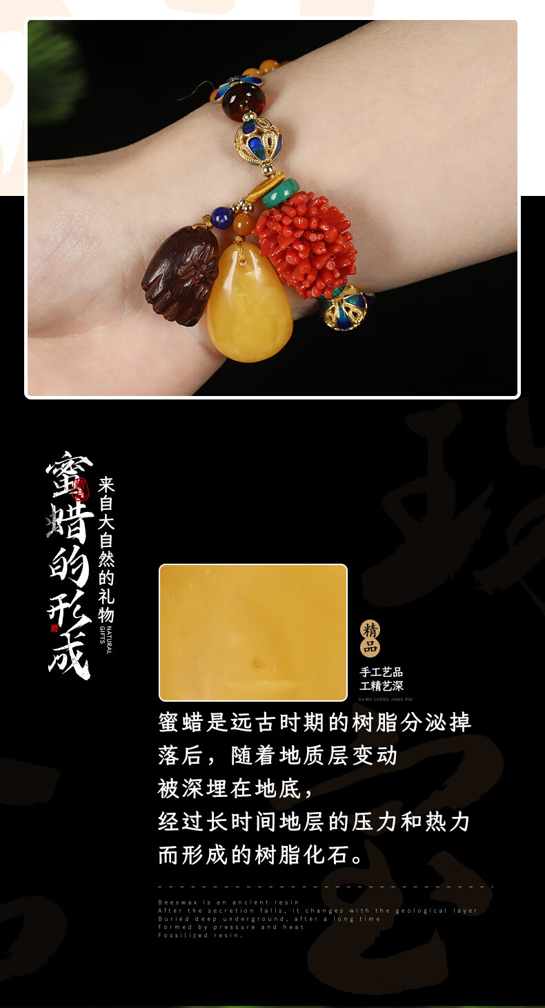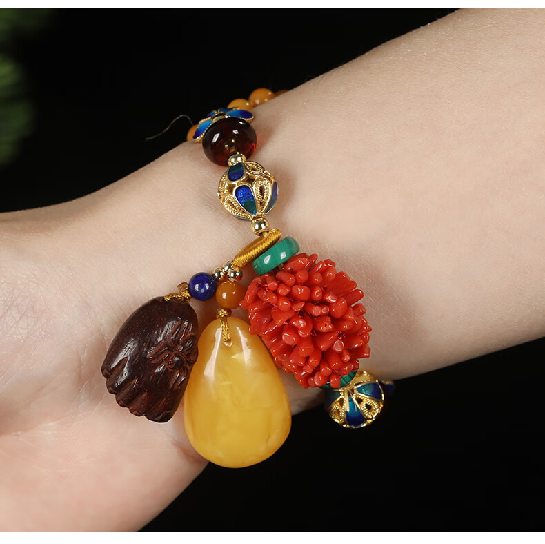 Ouchini beeswax bracelet, natural amber raw stone, old wax amber, cloisonné enamel, blood amber lapis lazuli, women's model, gift for mother, one item, one certificate, supports re-inspection