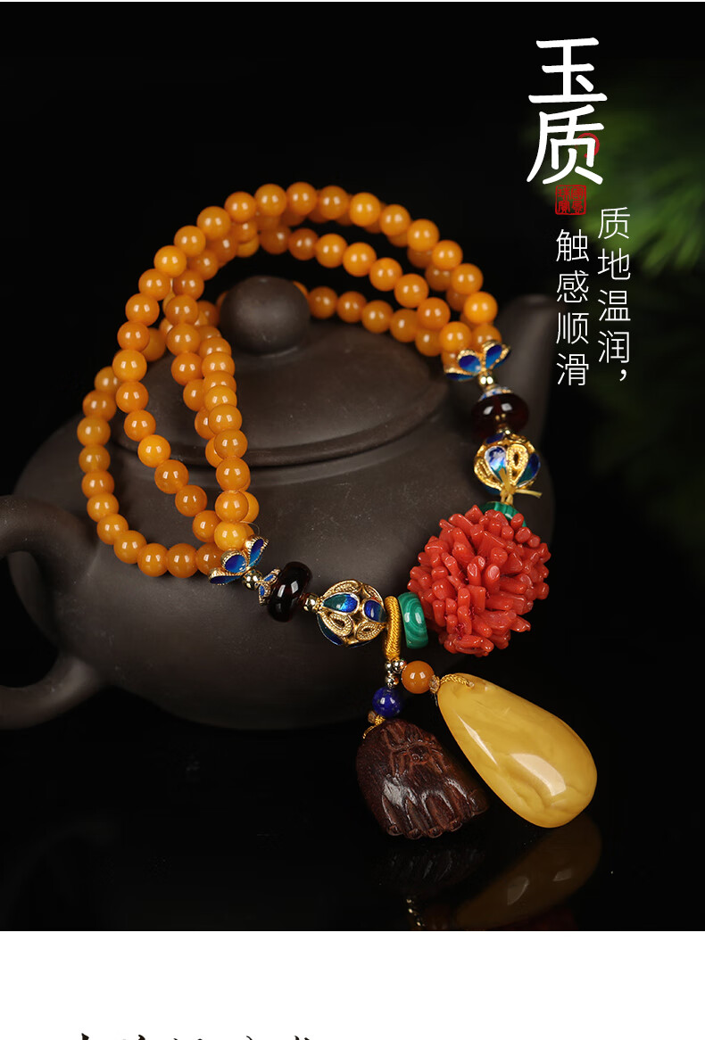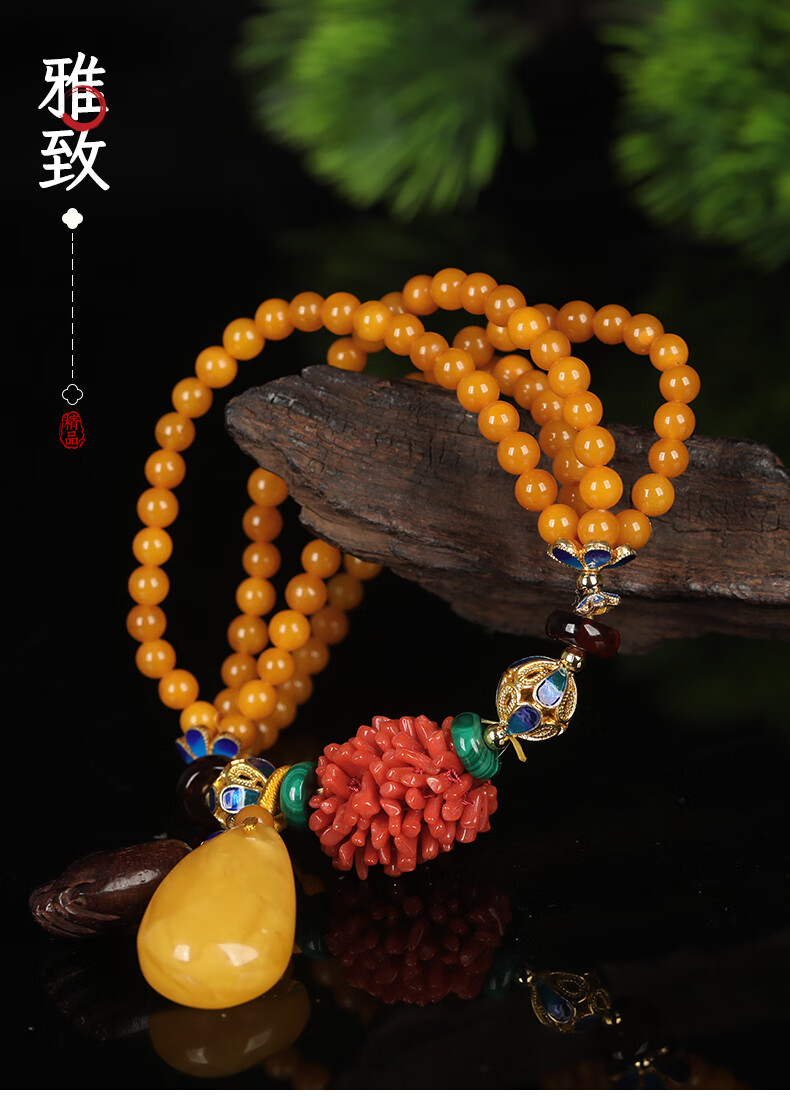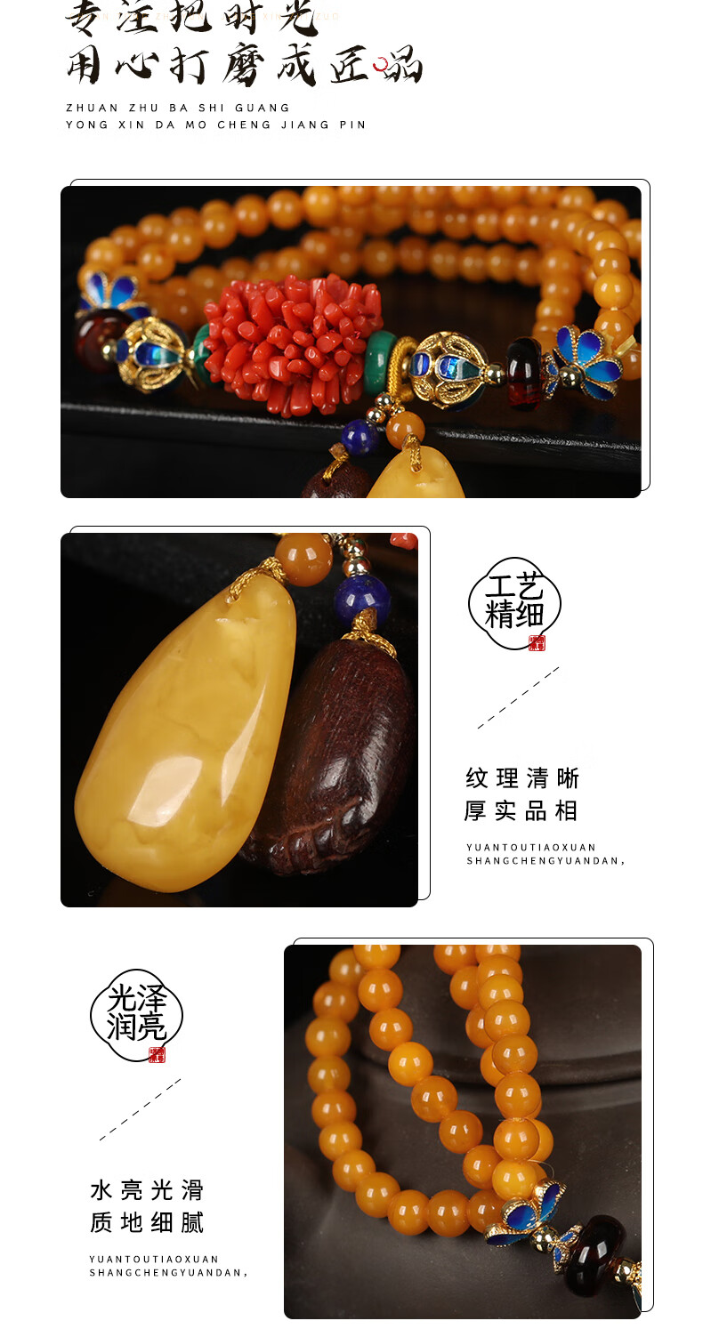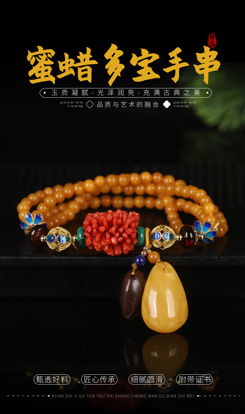 Ouchini beeswax bracelet, natural amber raw stone, old wax amber, cloisonné enamel, blood amber lapis lazuli, women's model, gift for mother, one item, one certificate, supports re-inspection