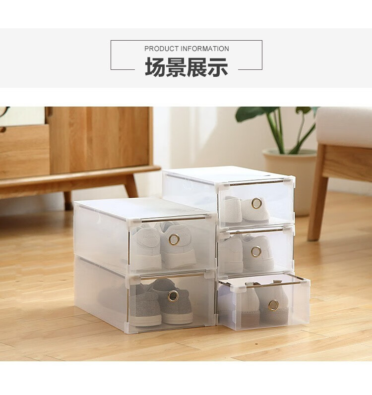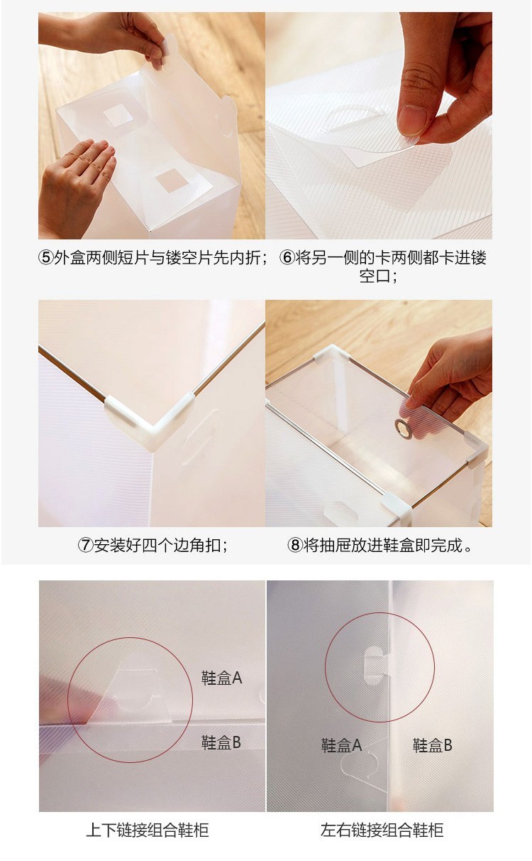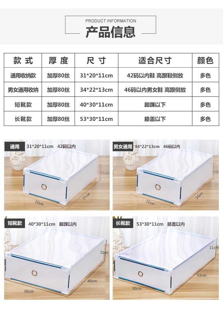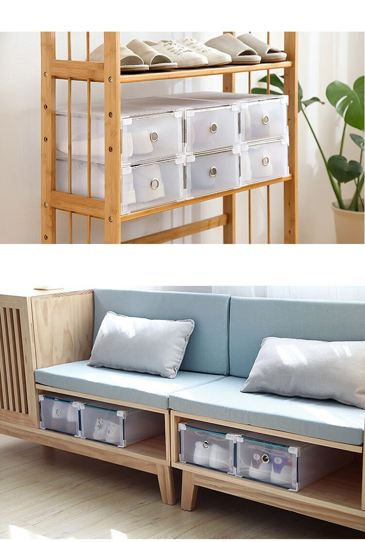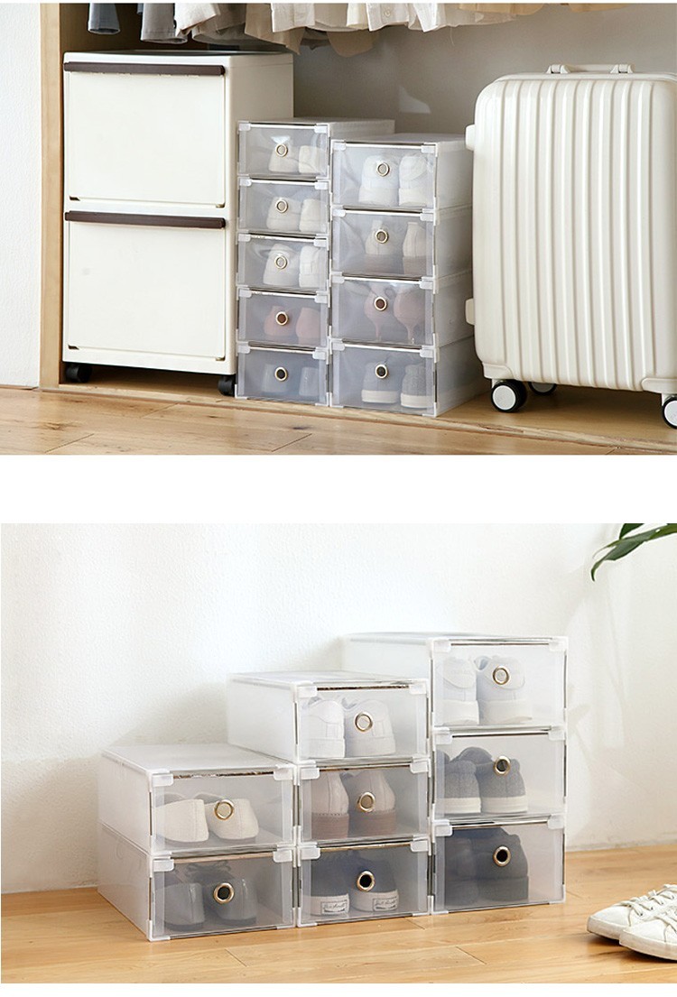Chen'an transparent shoe box dustproof storage box can be stacked and combined shoe cabinet drawer type home desktop storage long boots short boots drawer type thickened (8 pieces) white 42 size 31x20cm