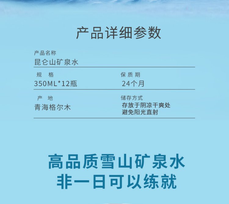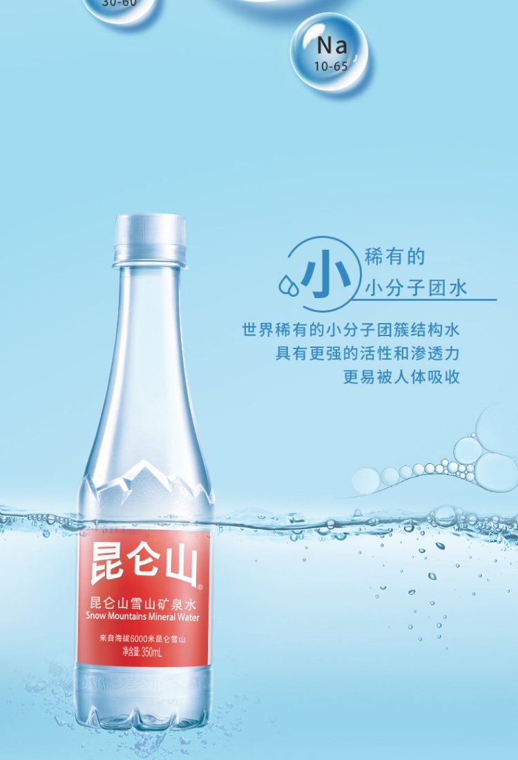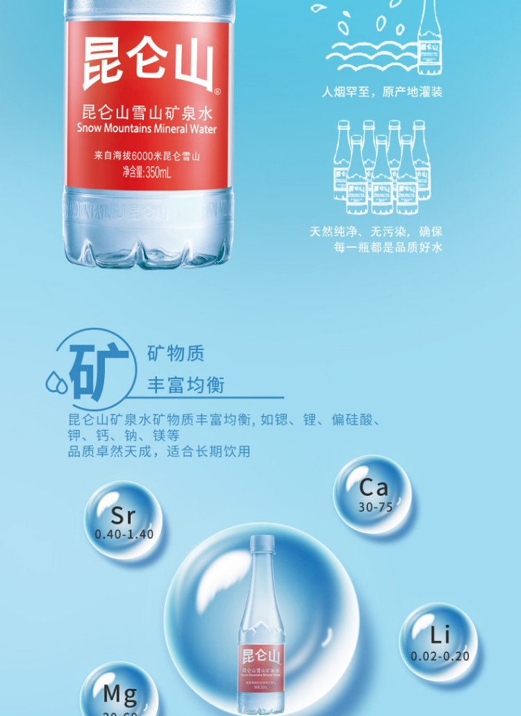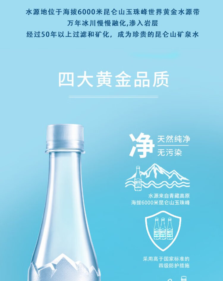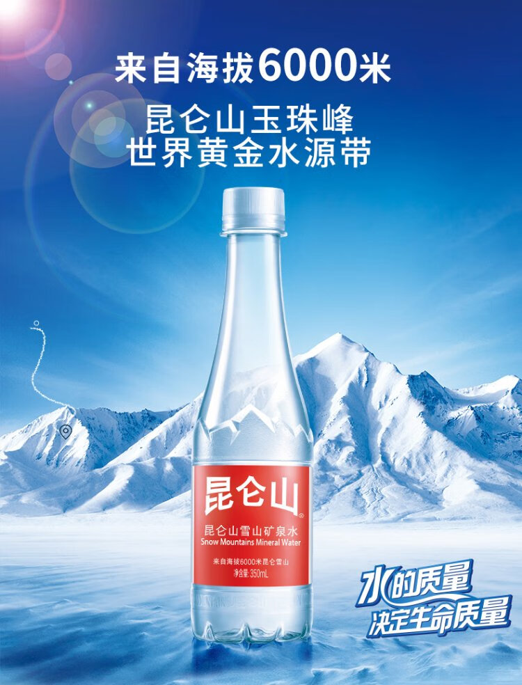 Kunlun Mountain Drinking Natural Mineral Water 350ml*12 Bottles High-End Mineral Water