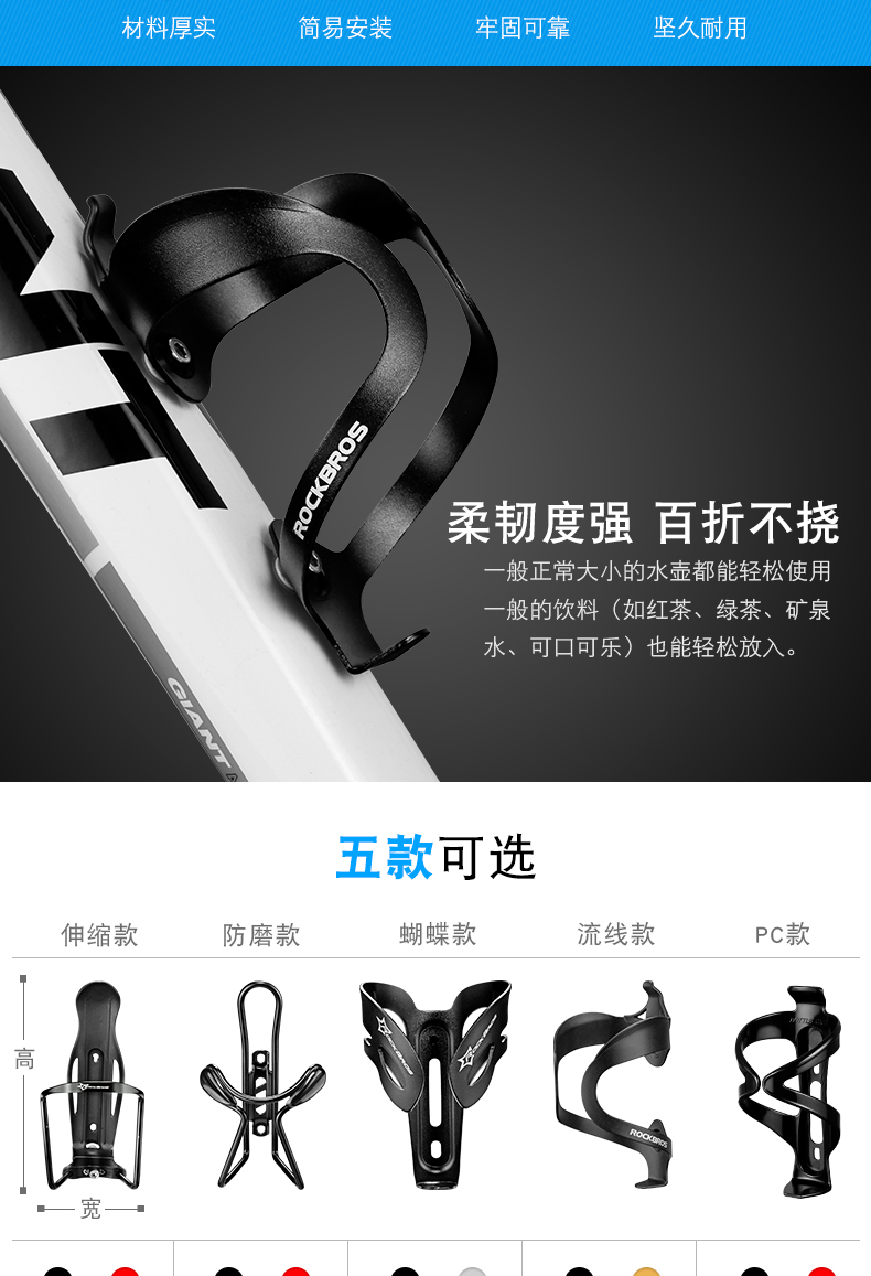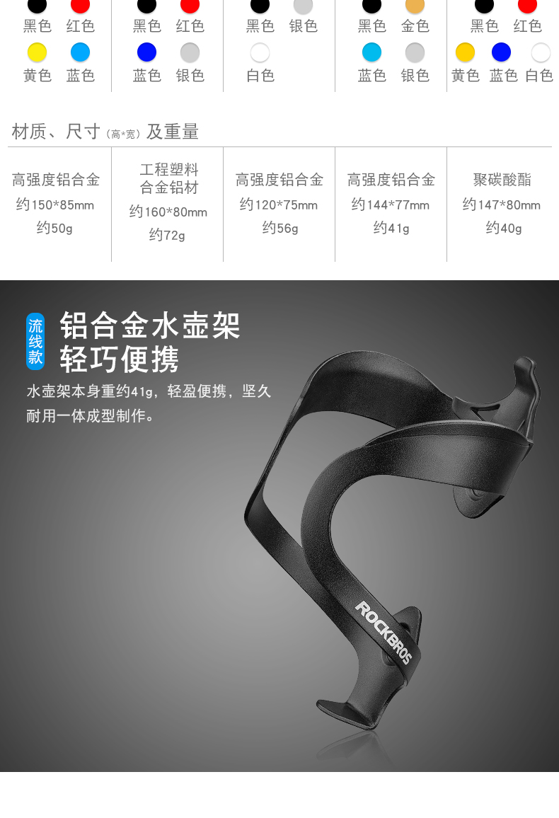 ROCKBROS ultra-light aluminum water bottle holder, mountain bike water cup holder, universal cycling equipment, telescopic type, black