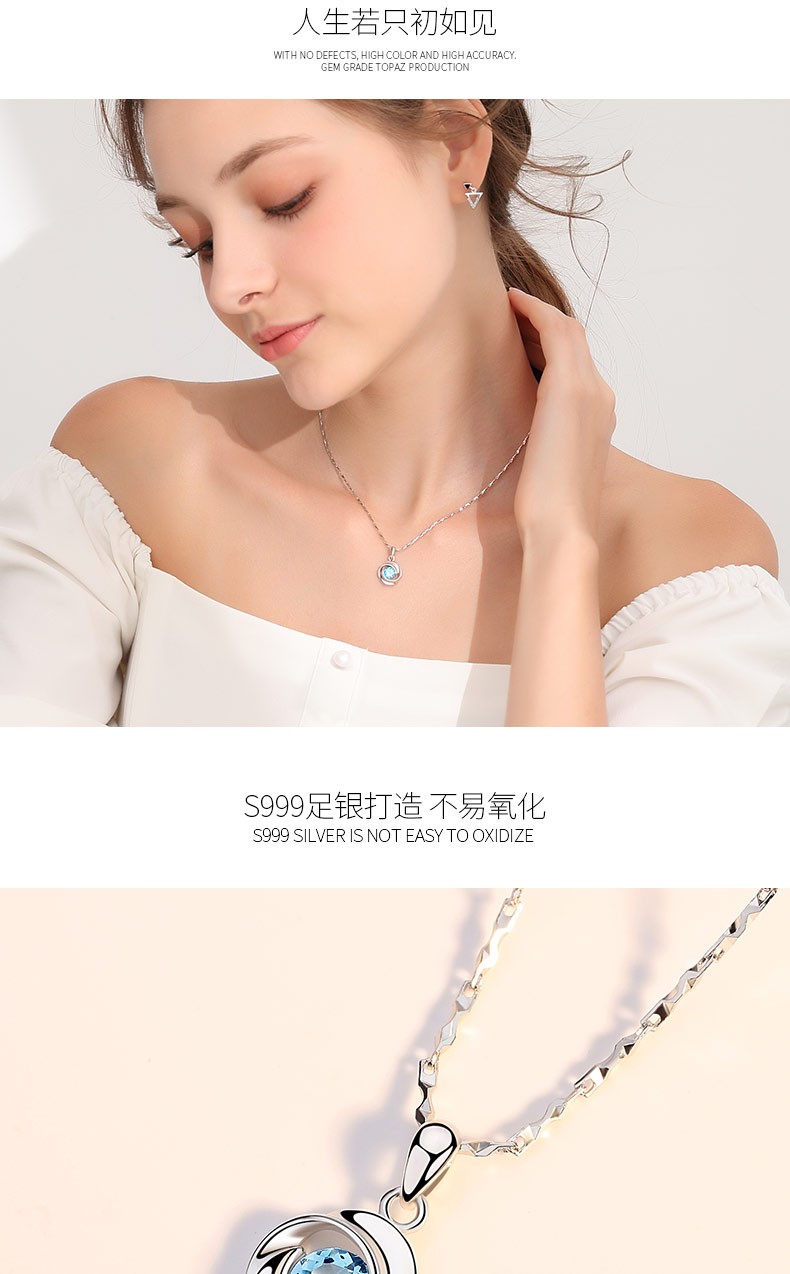 Saint-Jacques 999 pure silver four-leaf clover necklace, women's fashion jewelry pendant, birthday gift for girlfriend, love at first sight, white zirconium + baby's breath chain