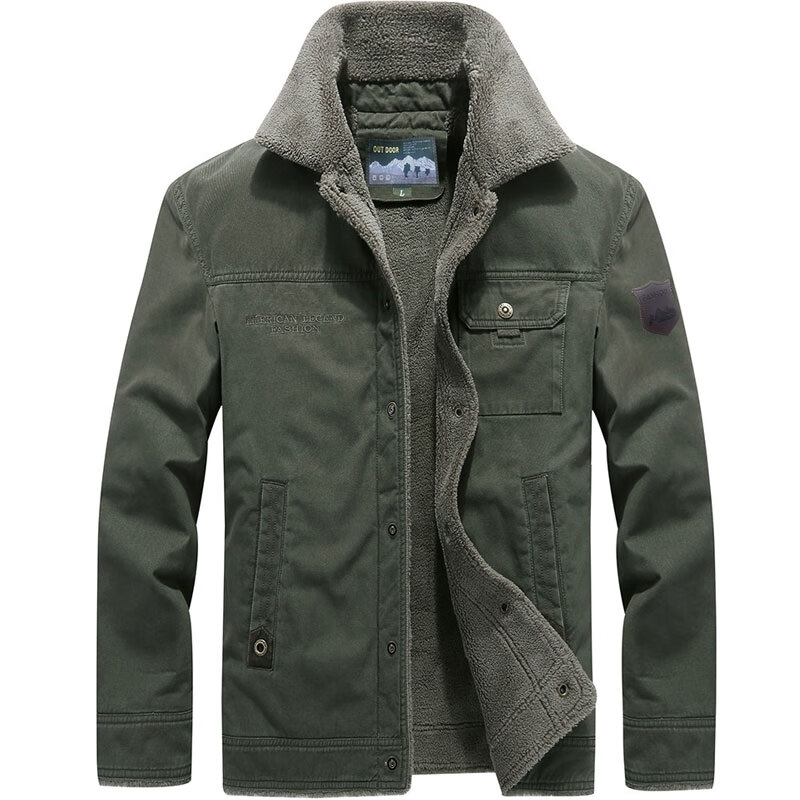 North Wolf Shield Winter Men's Cotton Clothes Plus Velvet Cotton Casual Thick Warm Jackets 3166 Army Green M (Suitable for 110 Jin Jin equals 0.5 kg -125 Jin Jin equals 0.5 kg)
