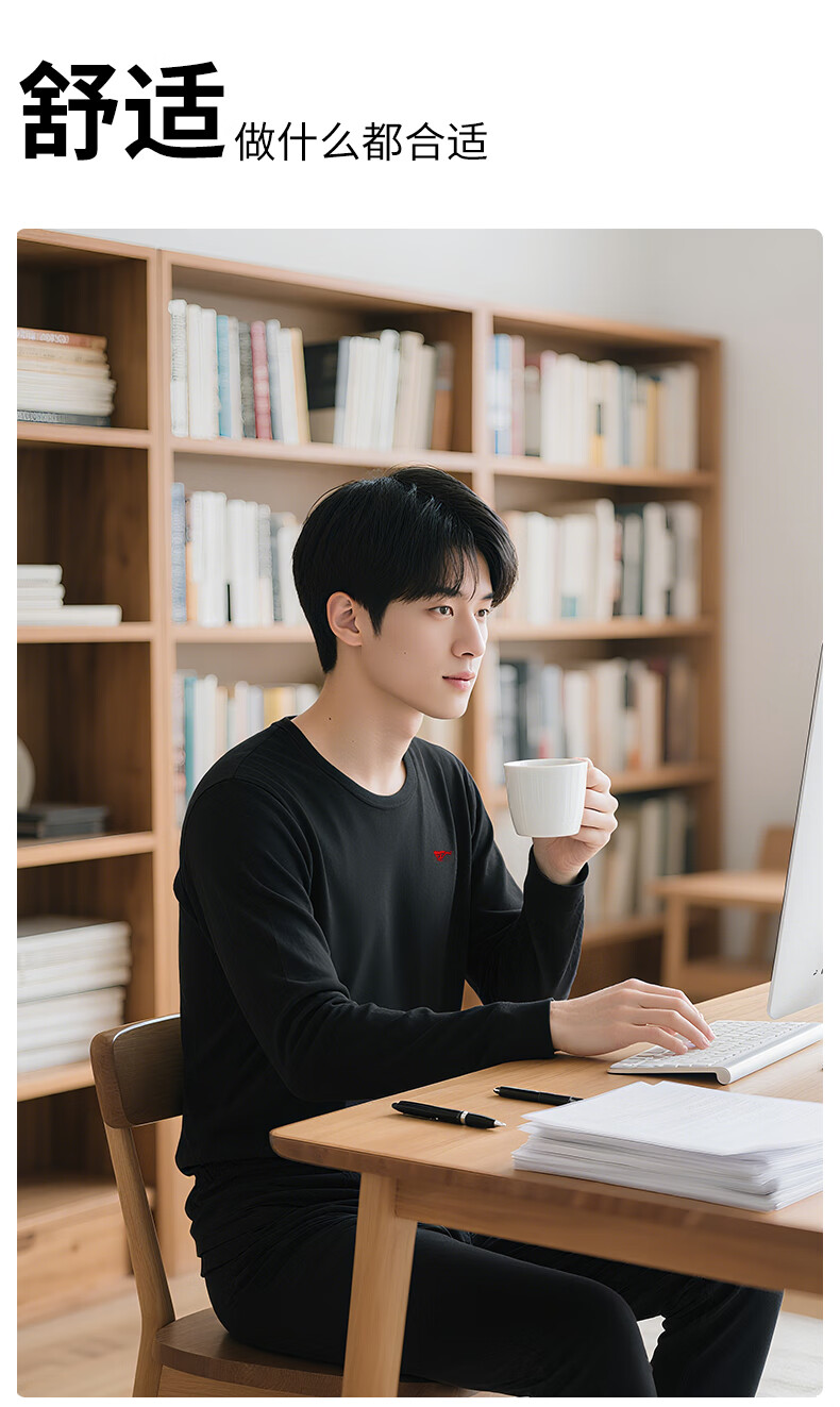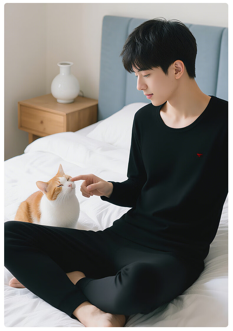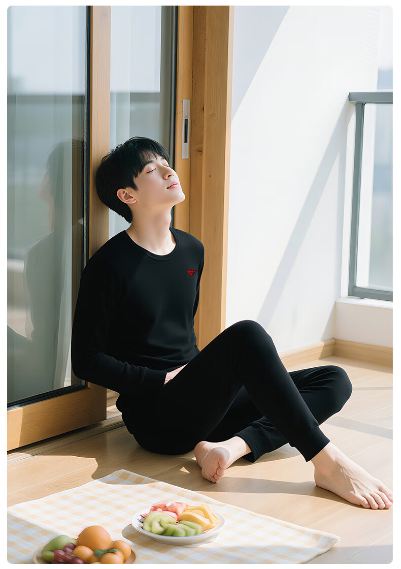 Septwolves Men's Autumn Clothes and Autumn Pants Men's Pure Cotton Thermal Underwear Thin Cotton Sweater Warm Clothes Warm Pants Warm Set Dark Gray (Top + Pants) XL (175) (Recommended weight 130-150Jin Jin equals 0.5 kg)