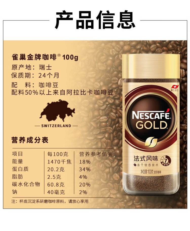 Nestlé spokesperson Ding Yuxi's same style Swiss gold medal freeze-dried black coffee imported 0 sugar 0 fat low calorie * original flavor 100g