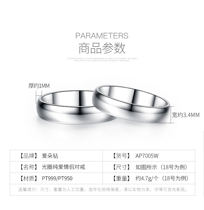Aido diamond pt999 platinum smooth ring simple pt950 platinum couple ring men and women wedding ring PT999 closed size 13 single weight 4.3-4.5 grams