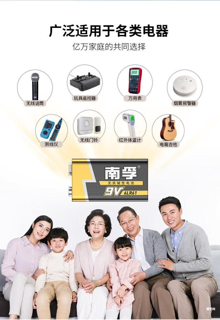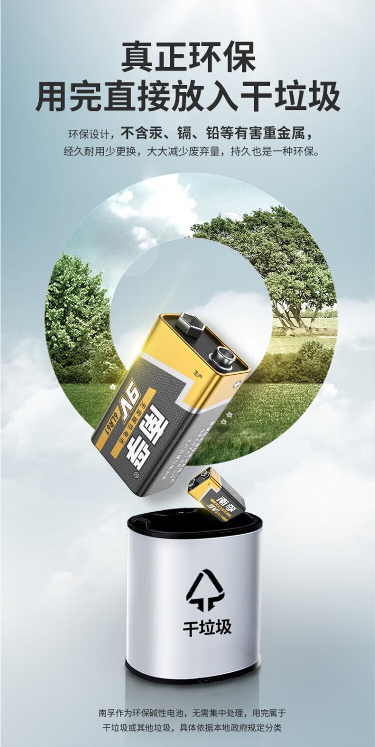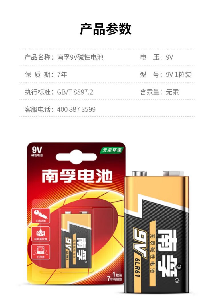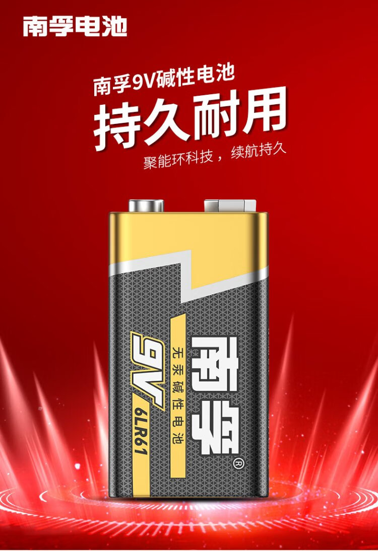 Nanfu 9V alkaline battery 1 pack 9v suitable for remote control toys/smoke alarms/wireless microphones/multimeters/microphones/remote controls, etc. 6LR61