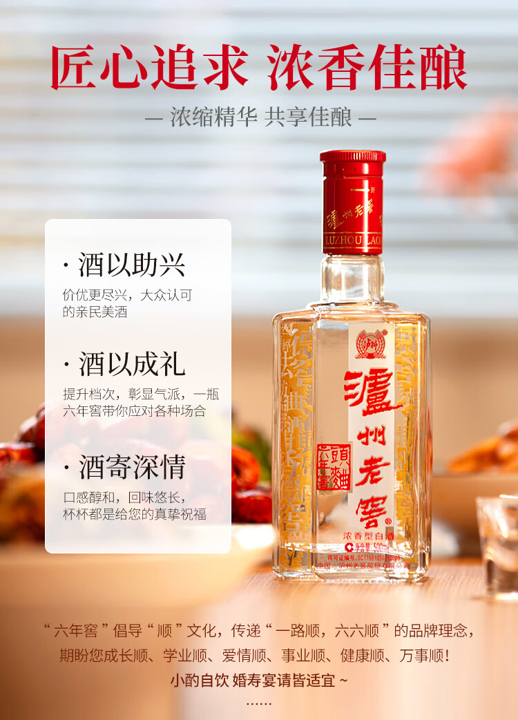 Luzhou Laojiao six-year cellar head song strong-flavor liquor 52% 500ml*6 bottles full box (3 gift bags included)