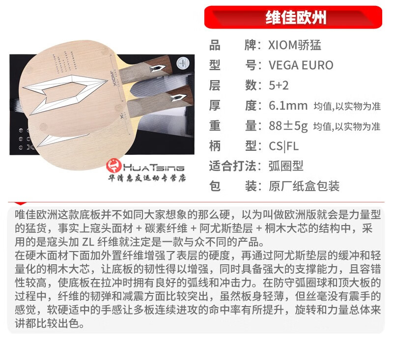 XIOM VEGA carbon fiber table tennis blade professional table tennis racket offensive competition training light cricket board Weijia Europe pen-hold CS (short handle)