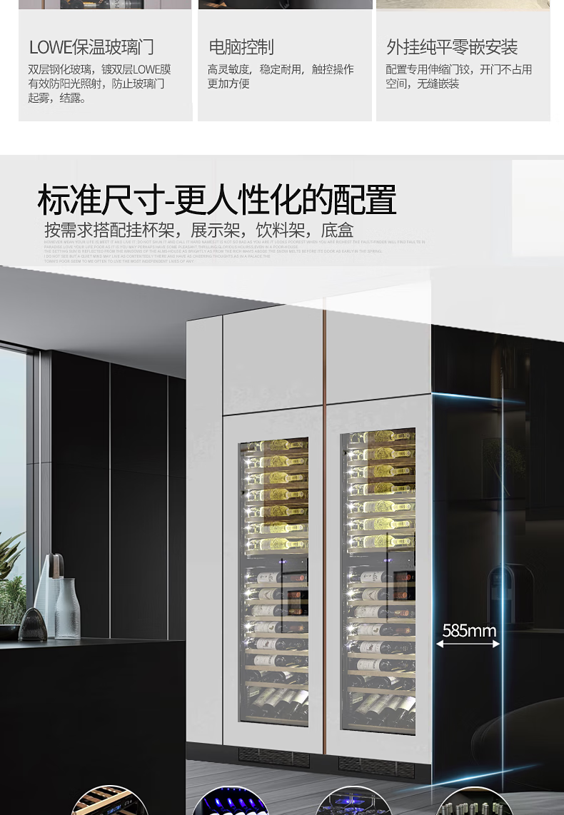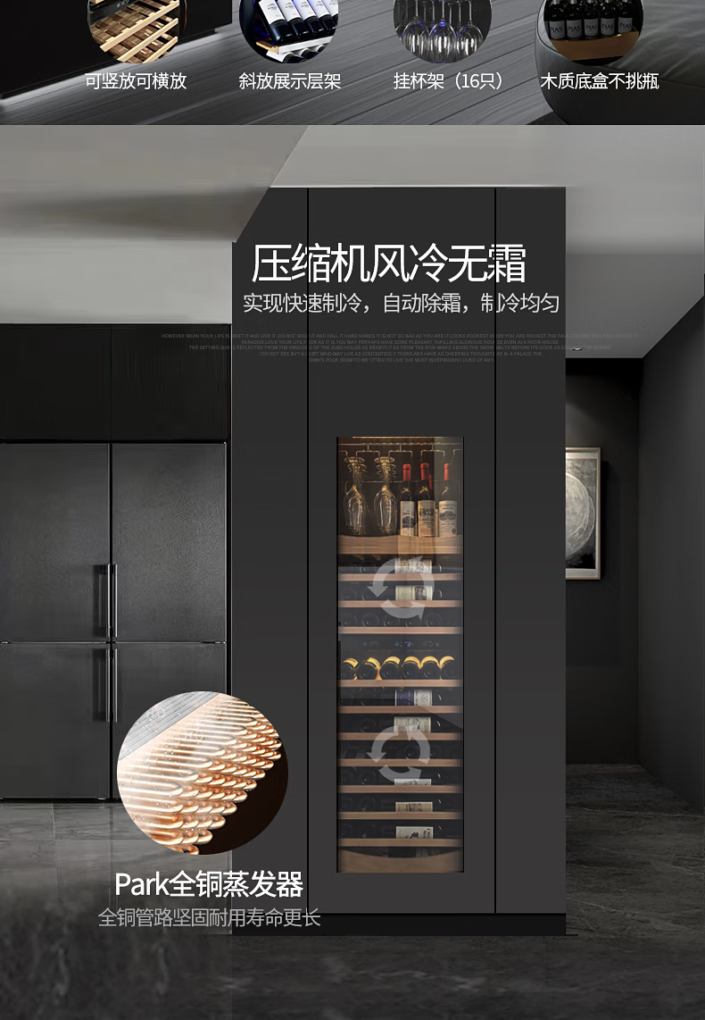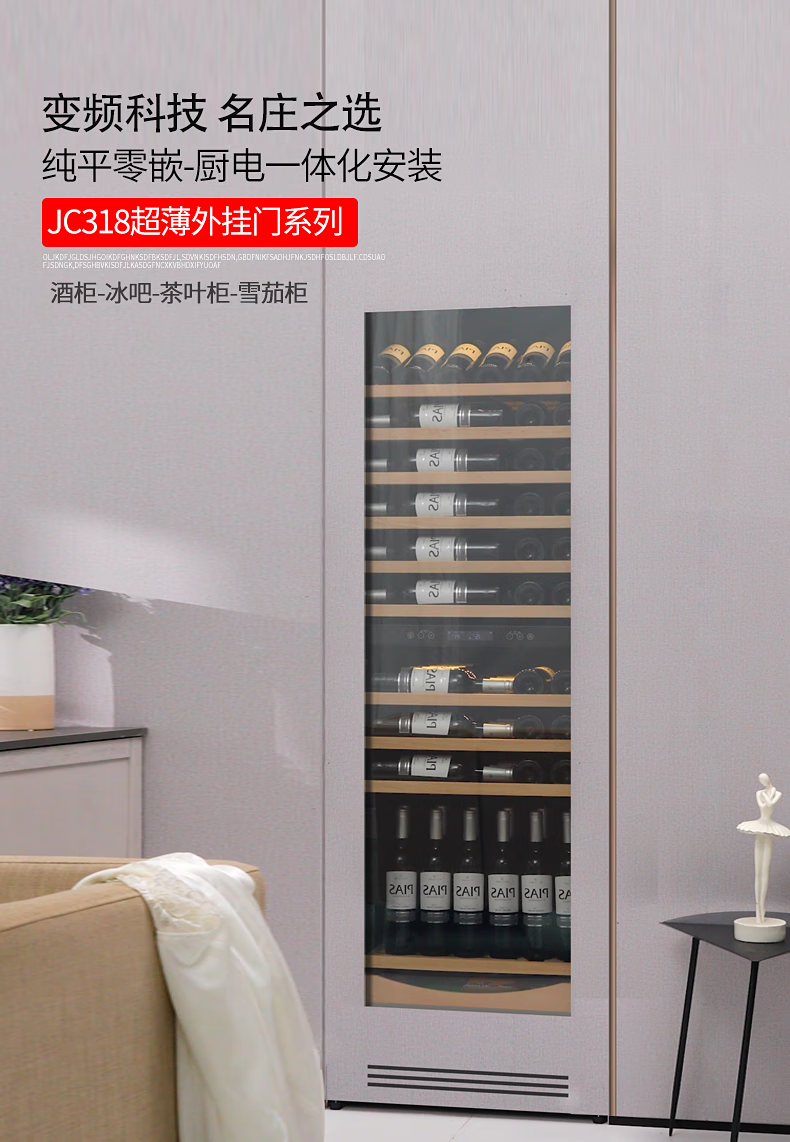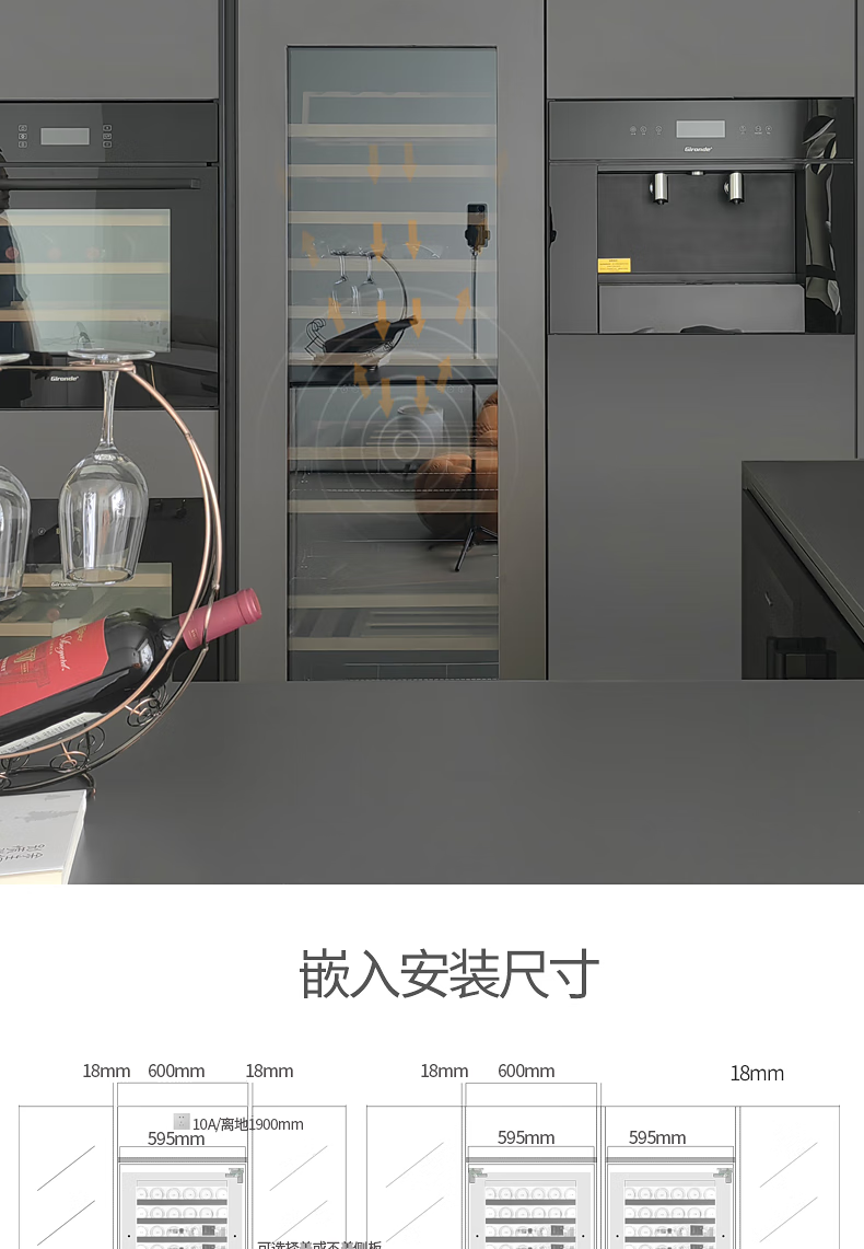 Gironde Embraco frequency conversion external door embedded red wine cabinet constant temperature wine cabinet tea beverage cabinet can be externally hung kitchen cabinet door seamless embedded installation home frequency conversion external door + multi-function dual temperature 109 bottles