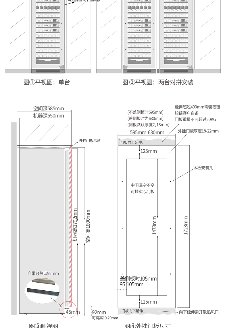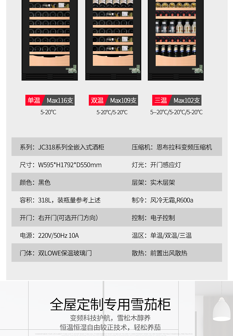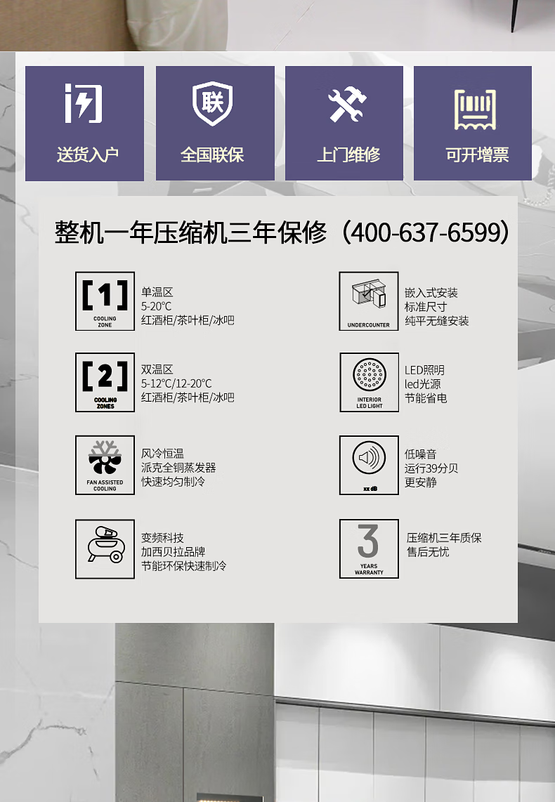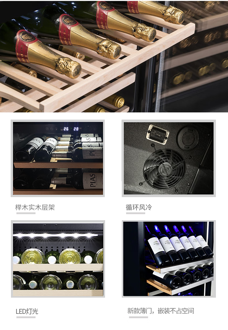 Gironde Embraco frequency conversion external door embedded red wine cabinet constant temperature wine cabinet tea beverage cabinet can be externally hung kitchen cabinet door seamless embedded installation home frequency conversion external door + multi-function dual temperature 109 bottles