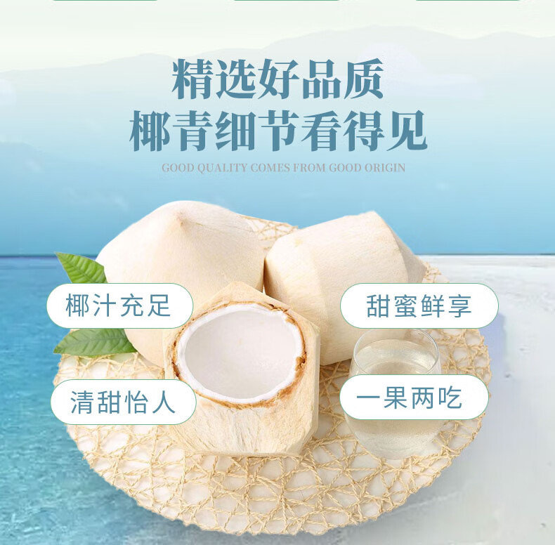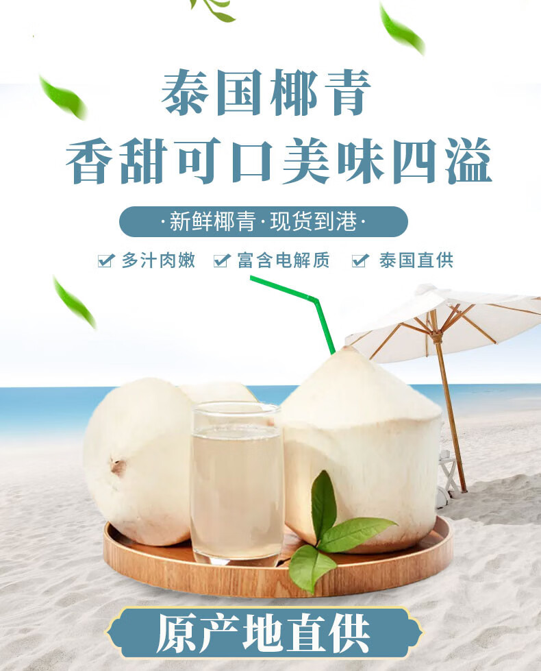Pinzan Thai Green Coconut 9 single fruits net weight 900g-1000g large coconut fresh fruit