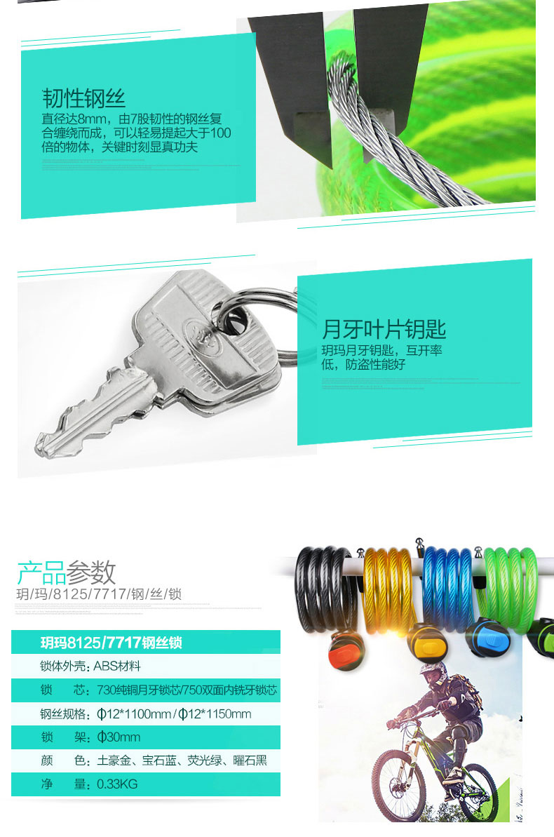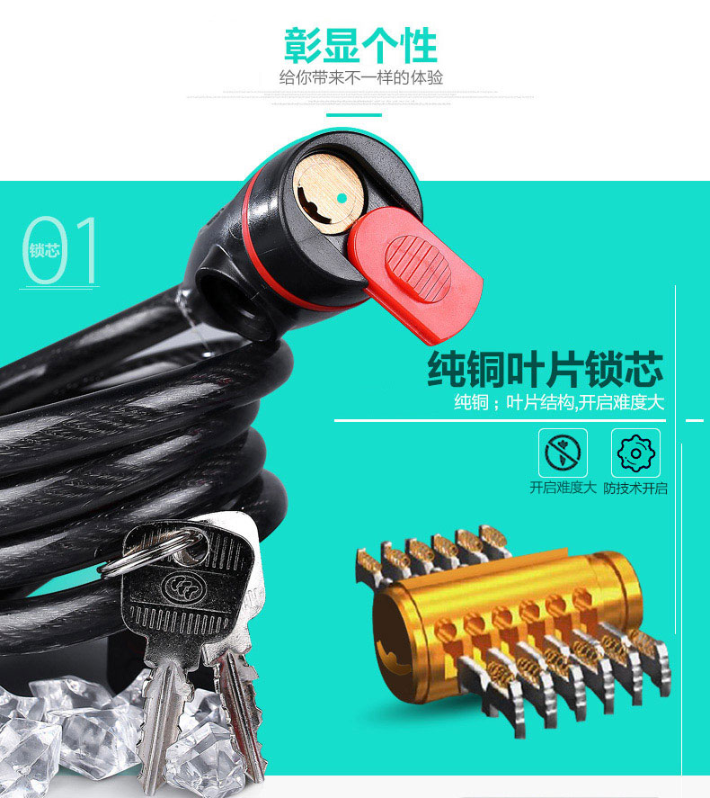 Yuema bicycle lock, mountain bike lock, bicycle lock, speed bike lock, road bike lock, cable lock, 7767 wire lock