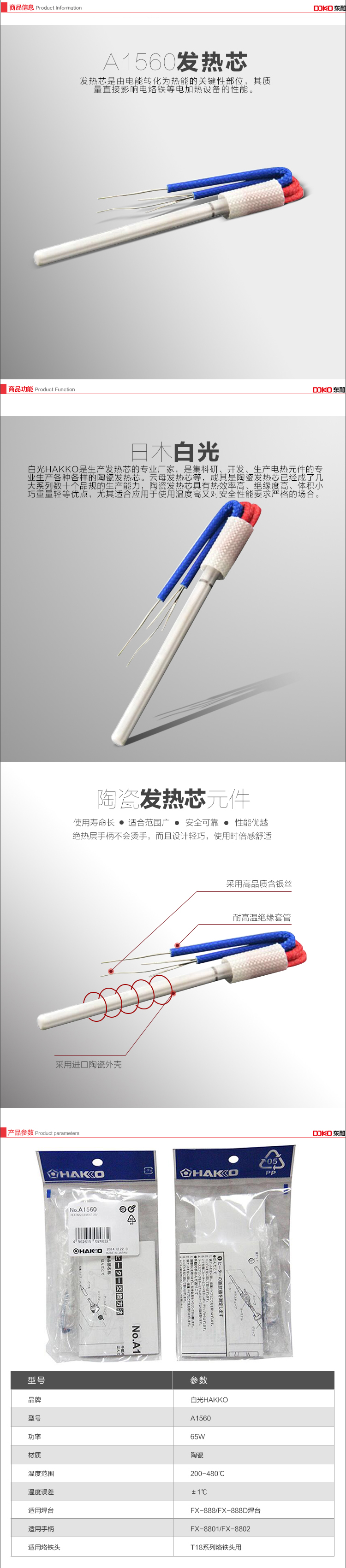 HAKKO Japanese white light FX888D ceramic heating core A1560 936 upgraded soldering iron FX-8801 heating element A1560 heating core