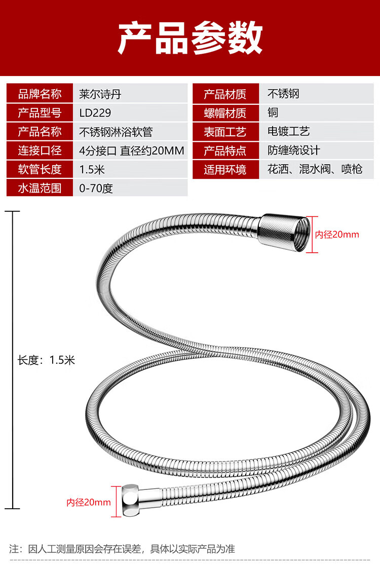 Larsd hand shower hose, shower set hose, stainless steel shower head, 1.5 meter tube LD229