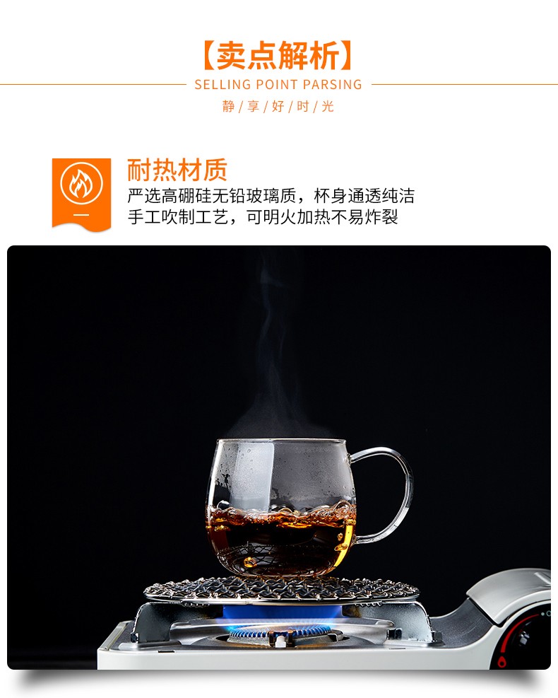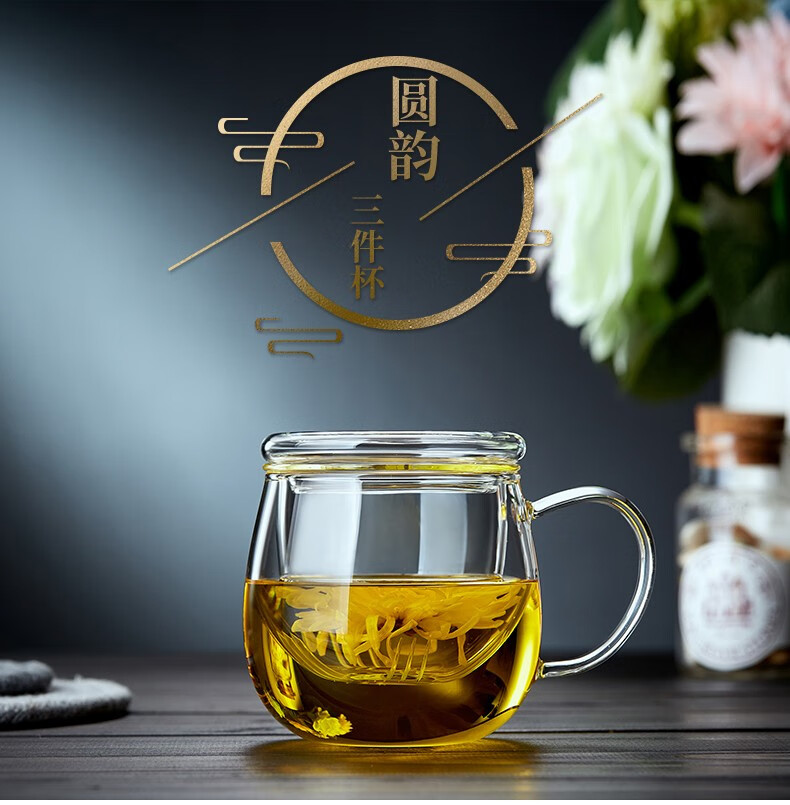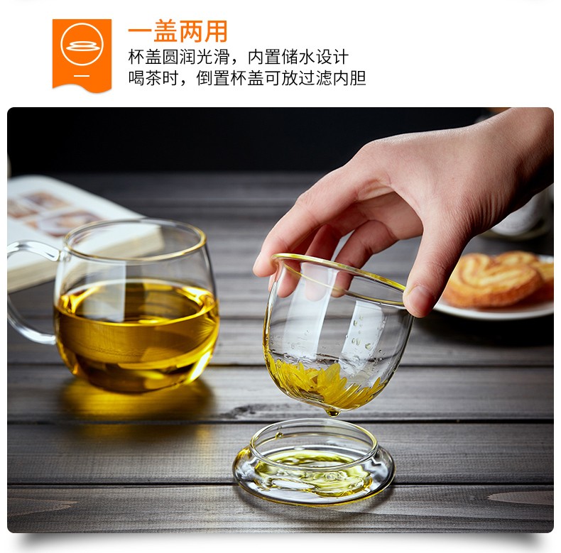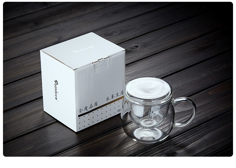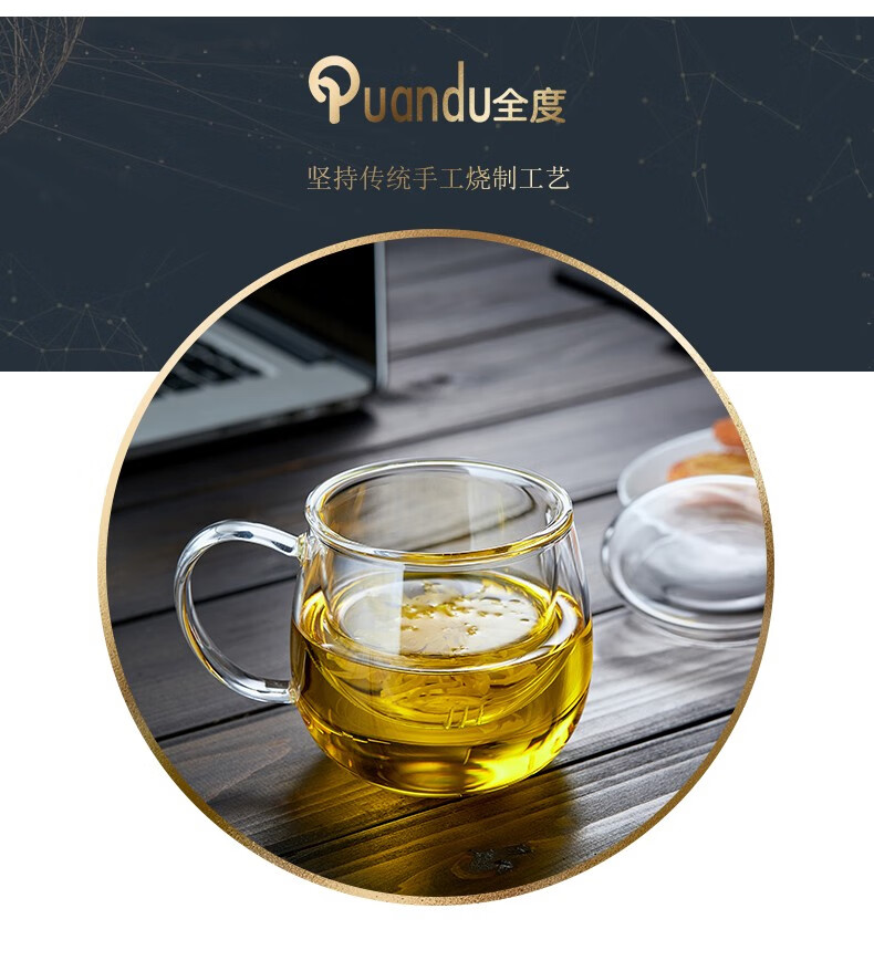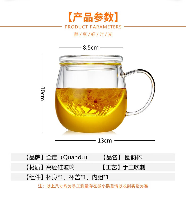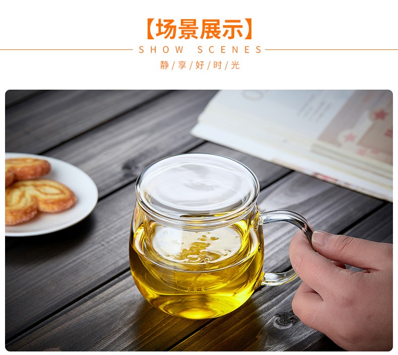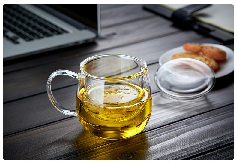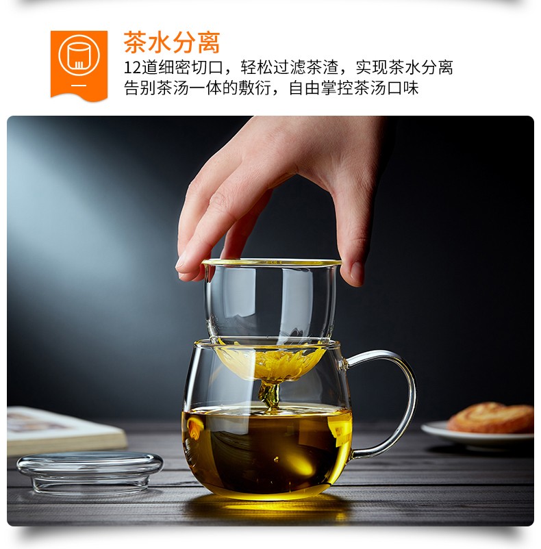 Quandu glass tea cup, tea set, office cup, drinking tea cup, green tea cup with filter liner, tea cup, glass water cup, tea cup QD01 (380ML)
