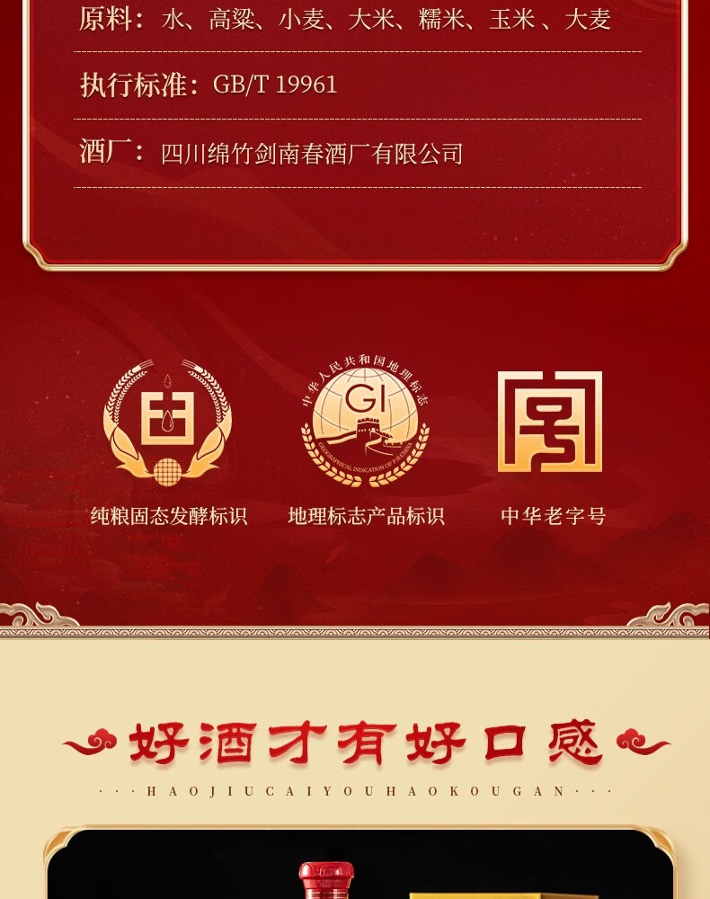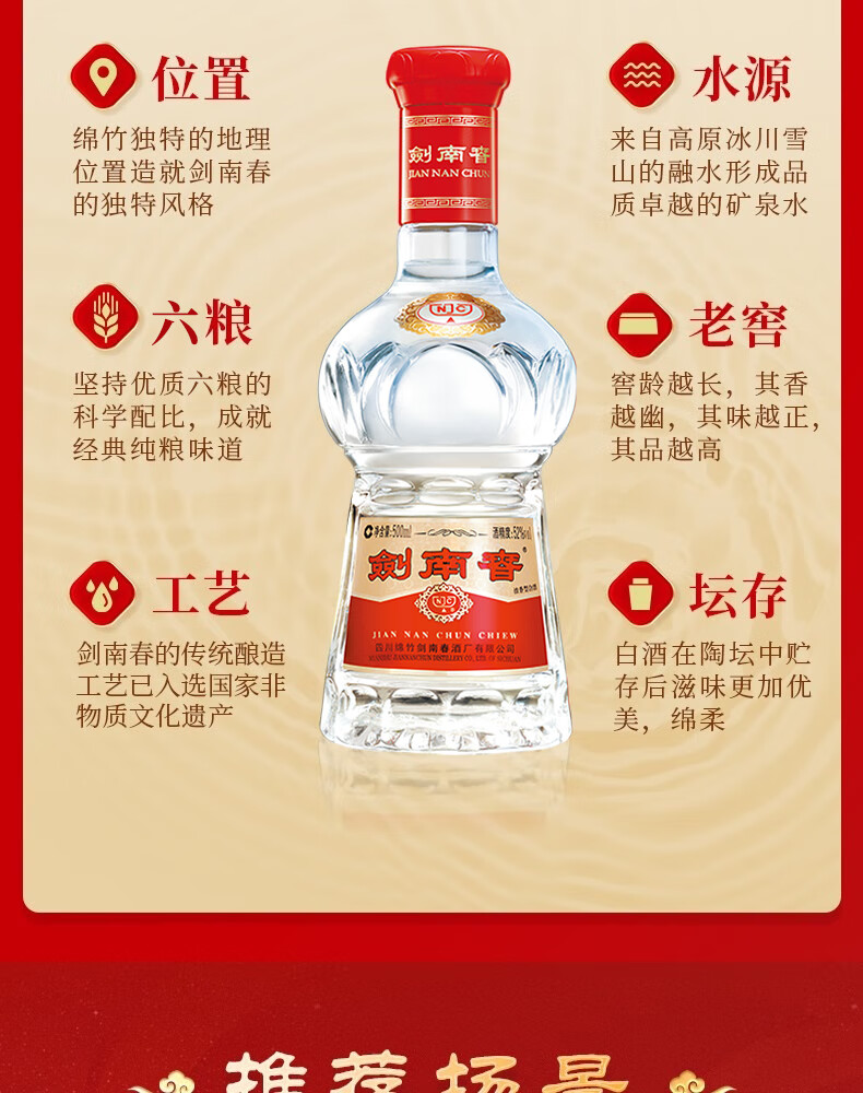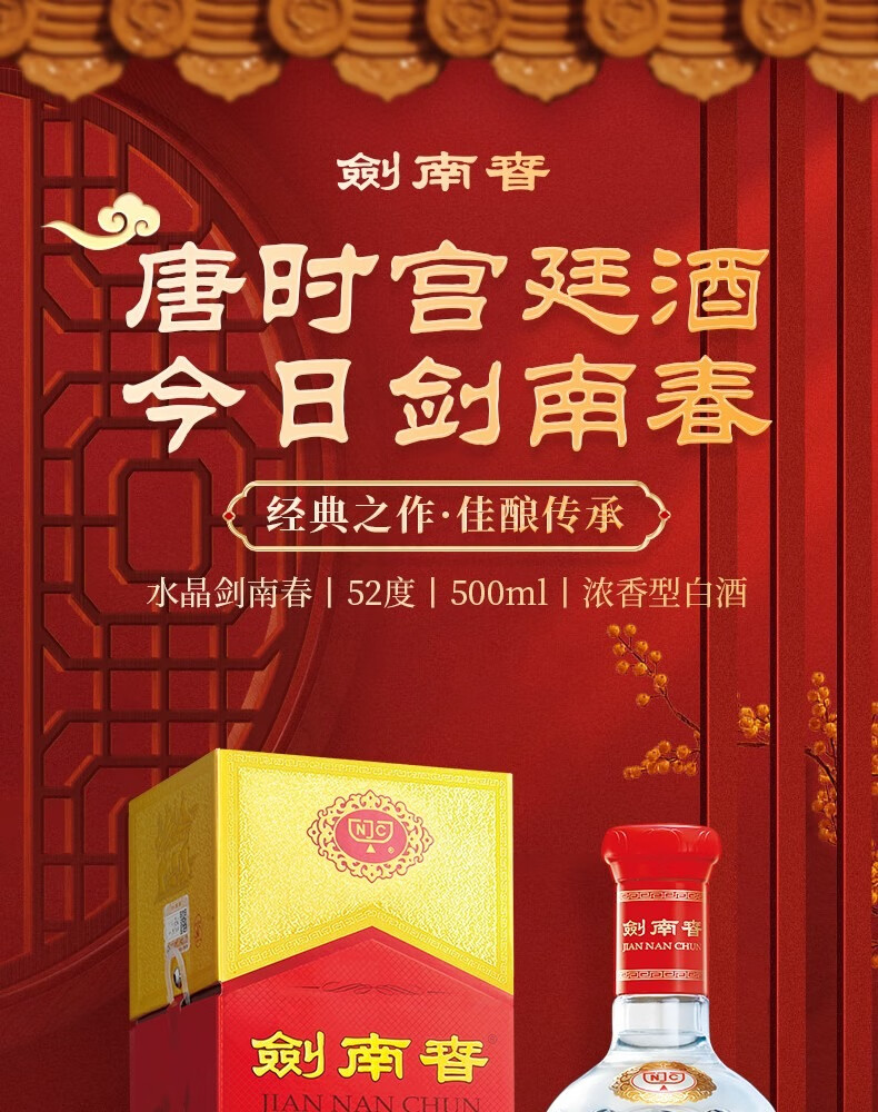 Jiannanchun Crystal Sword Wedding Gifts and Banquets Stock Up Strong Flavor High Liquor 52% 500mL 6 Bottles Full Box Banquet Gifts