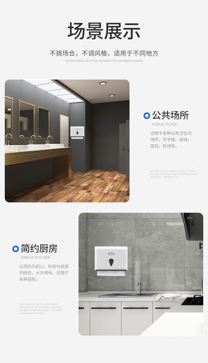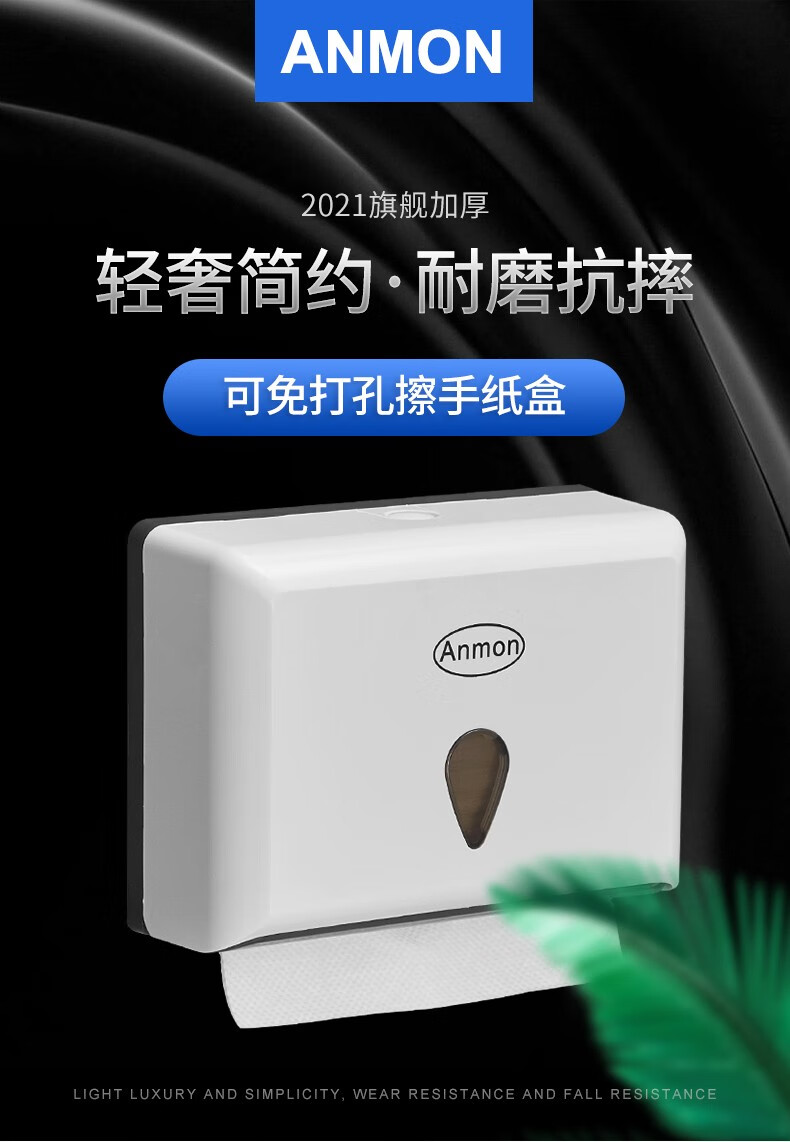 Anmon bathroom hotel punch-free wall-mounted waterproof plastic paper towel box commercial hand-pumped kitchen paper towel box finishing touch series-white