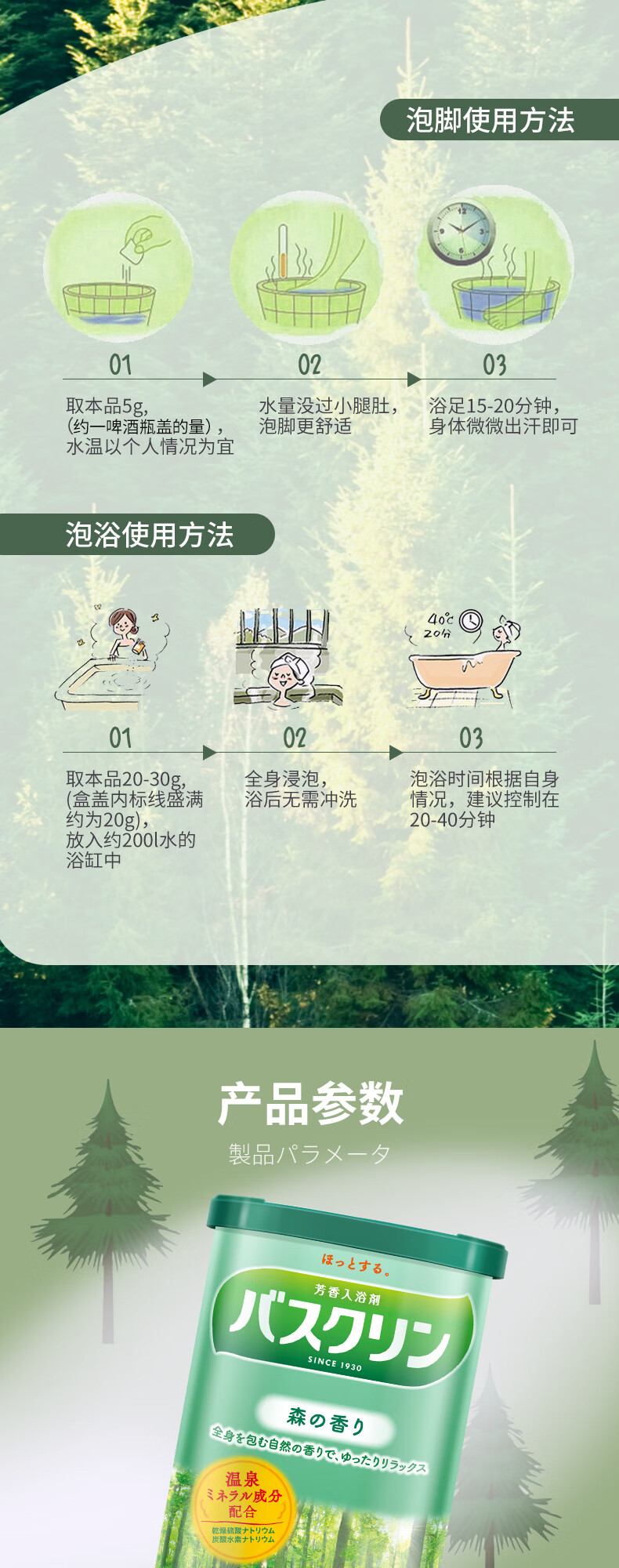 Basulin warm scented bath salt foot bath powder (forest fragrance) 600g Japanese imported foot bath salt