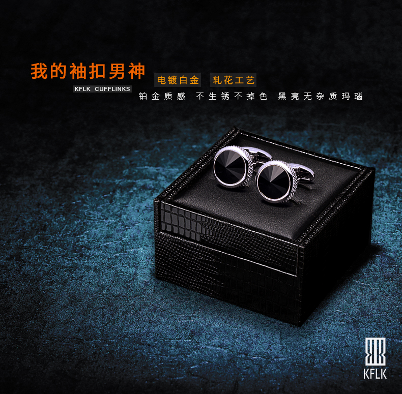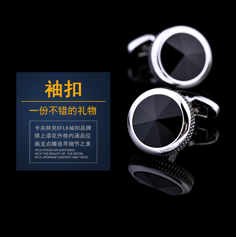 KFLK high-end light luxury black cufflinks men's shirt sleeve nails business casual all-match shirt buttons metal cuff buttons F815