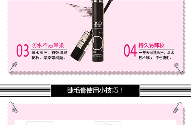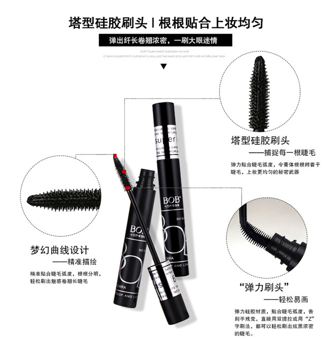 BOB Stunning Slim Mascara Thick Curl Big Eyes Makeup Counter Long-lasting Waterproof No Smudge Beginner