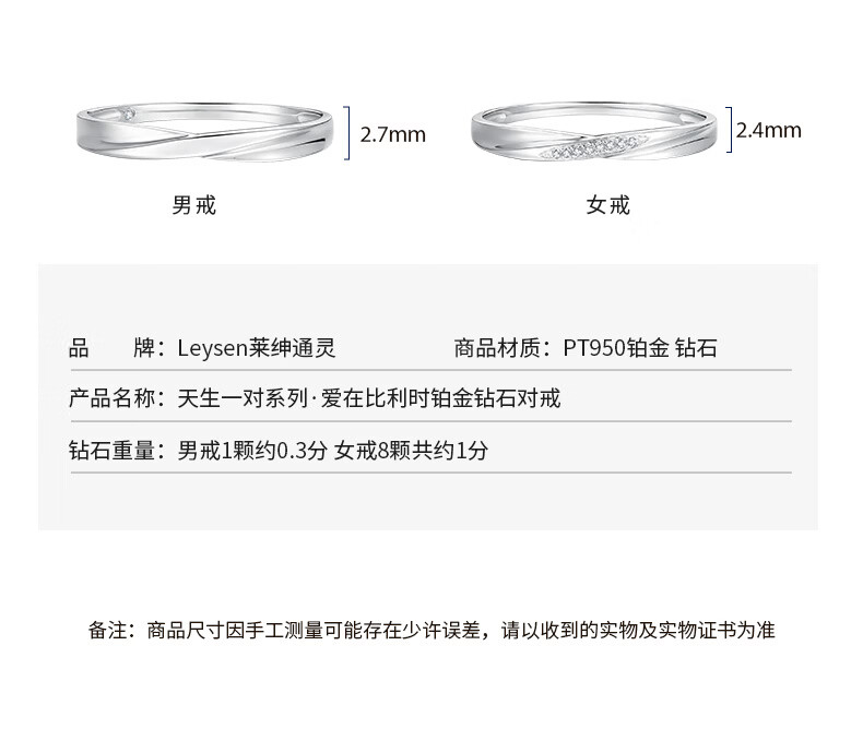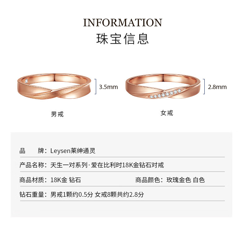Laishen psychic pairing ring, wedding couple diamond ring, men's and women's 18K gold proposal diamond ring, love in Belgium, true love confession, women's white 18K gold