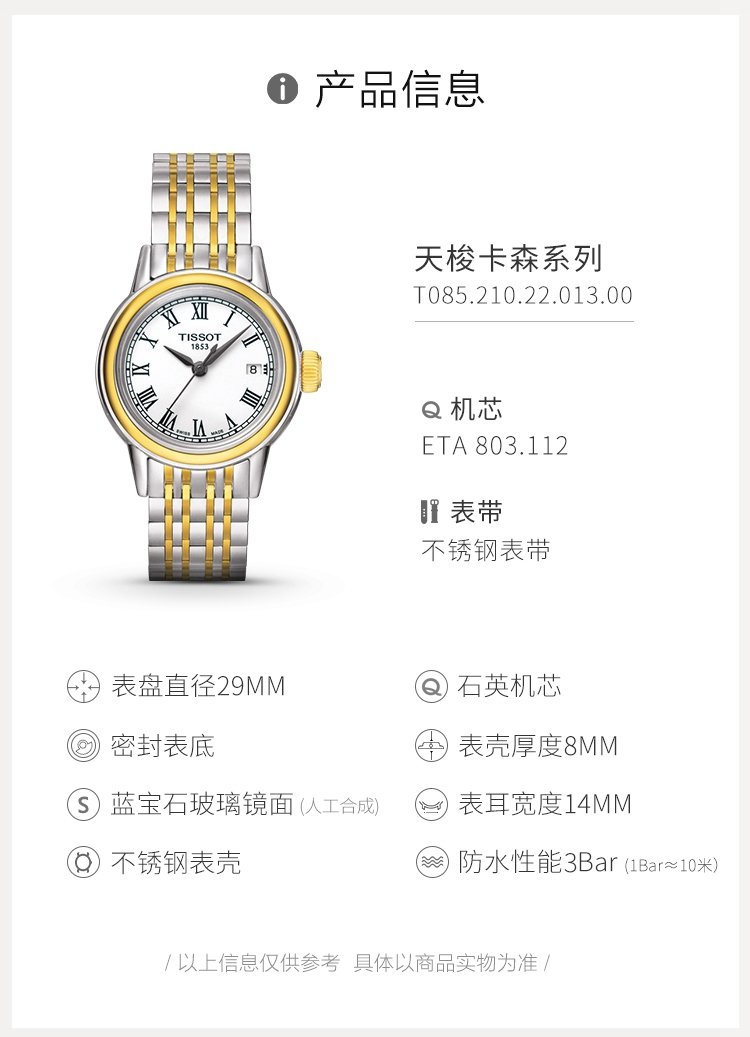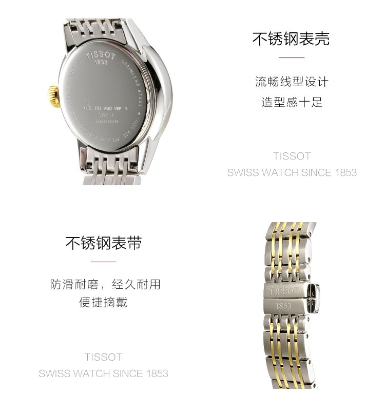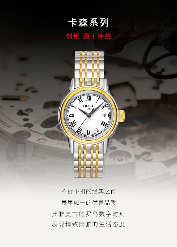 Tissot watch Carson series women's watch Swiss quartz women's steel band watch fashion watch Christmas gift