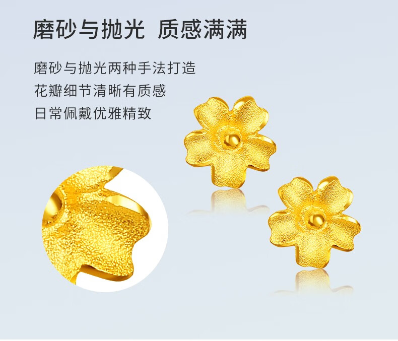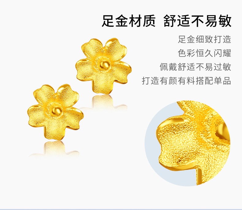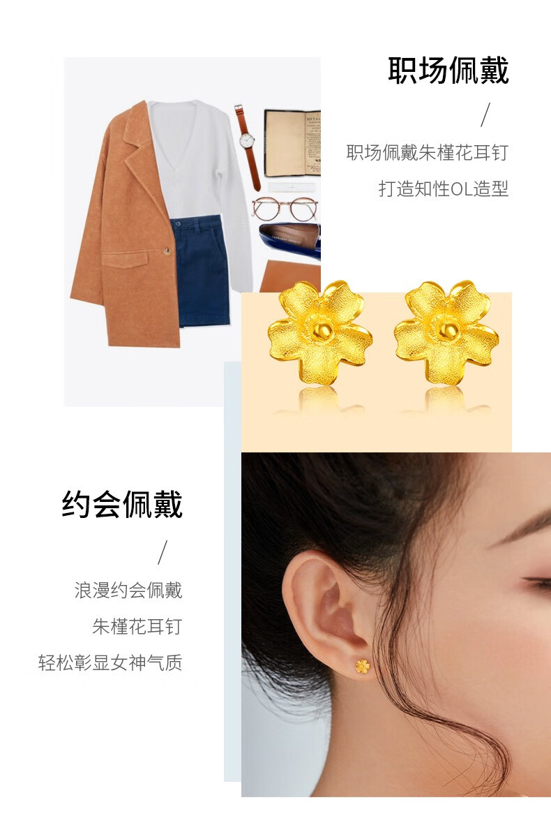 Xie Ruilin (TSL) gold earrings for women, hibiscus simple temperament pure gold earrings birthday YM352, about 0.7g, labor cost 200 yuan