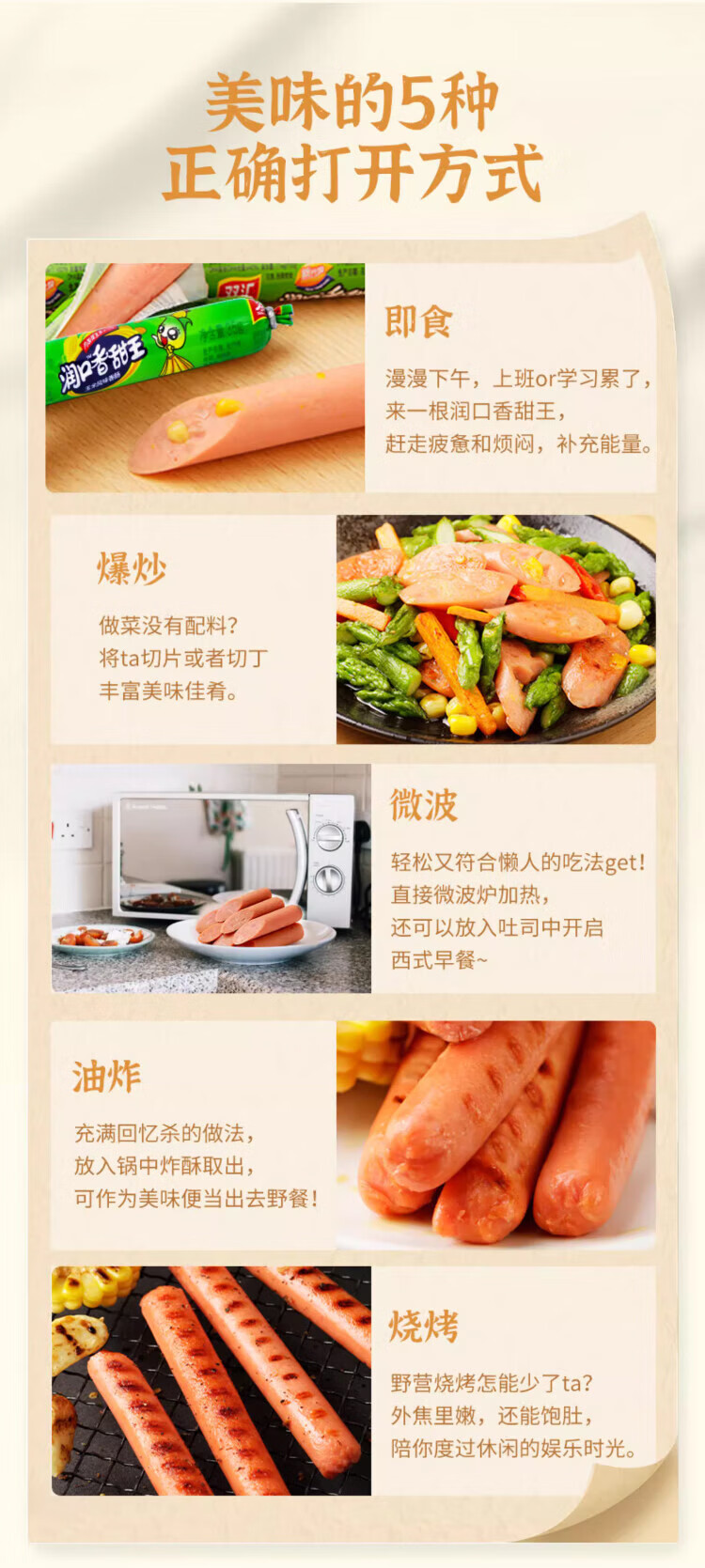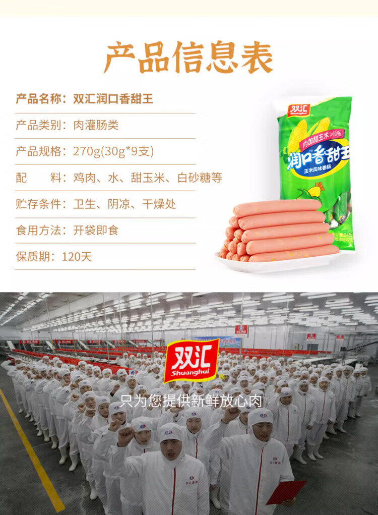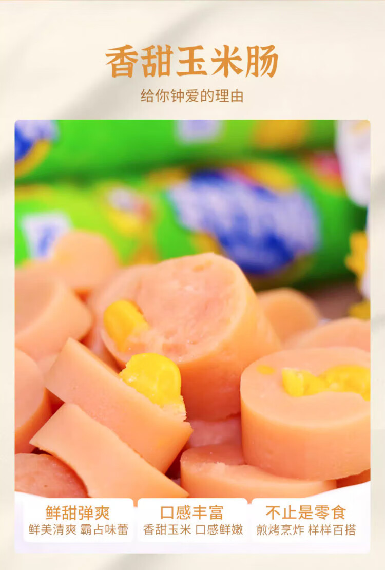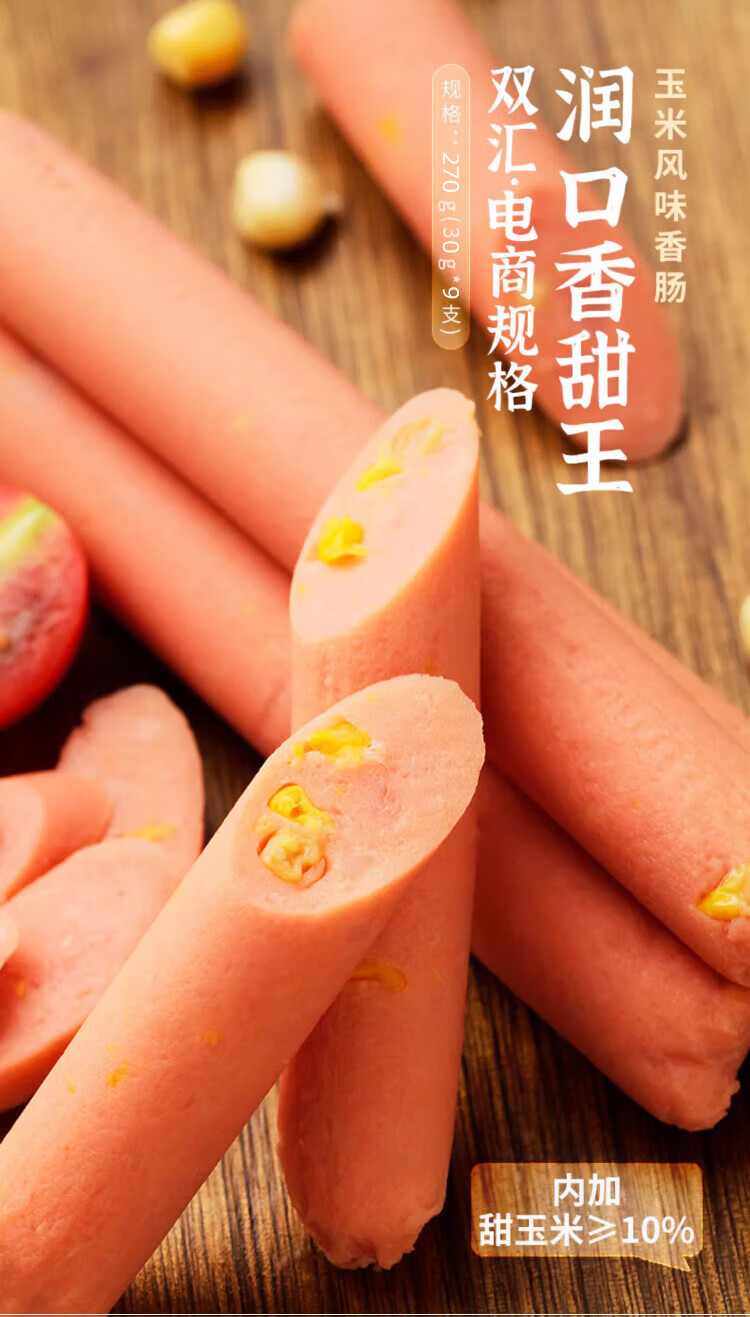 Shuanghui Sweet King 30g*9 pieces, corn sausage, ham sausage, snacks, sausage, camping, fast food