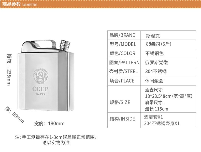 Snake 304 stainless steel wine bottle portable outdoor portable flat wine bottle iron wine set portable thickened 5 Jin Jin equals 0.5 kg for liquor, capacity is about 5 Jin Jin equals 0.5 kg