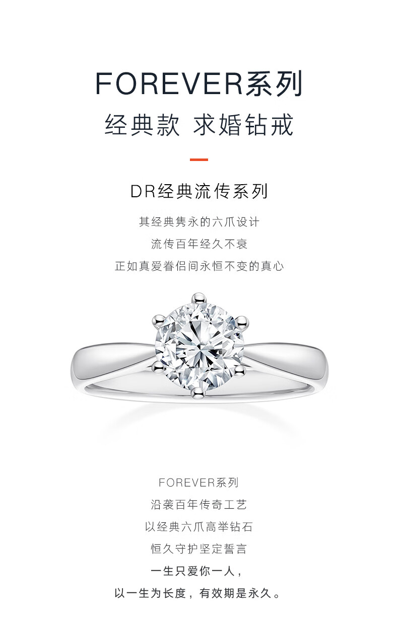DR Proposal Diamond Ring Platinum Classic Six Claws FOREVER Classic Wedding Ring Holiday Gift Premium Selection *30 Points D Color VS1 GIA Certificate + Gift Box (Please contact customer service for details)