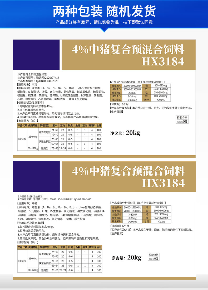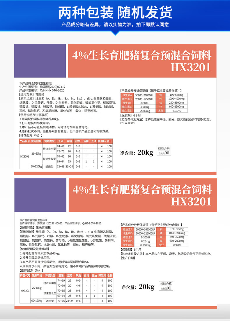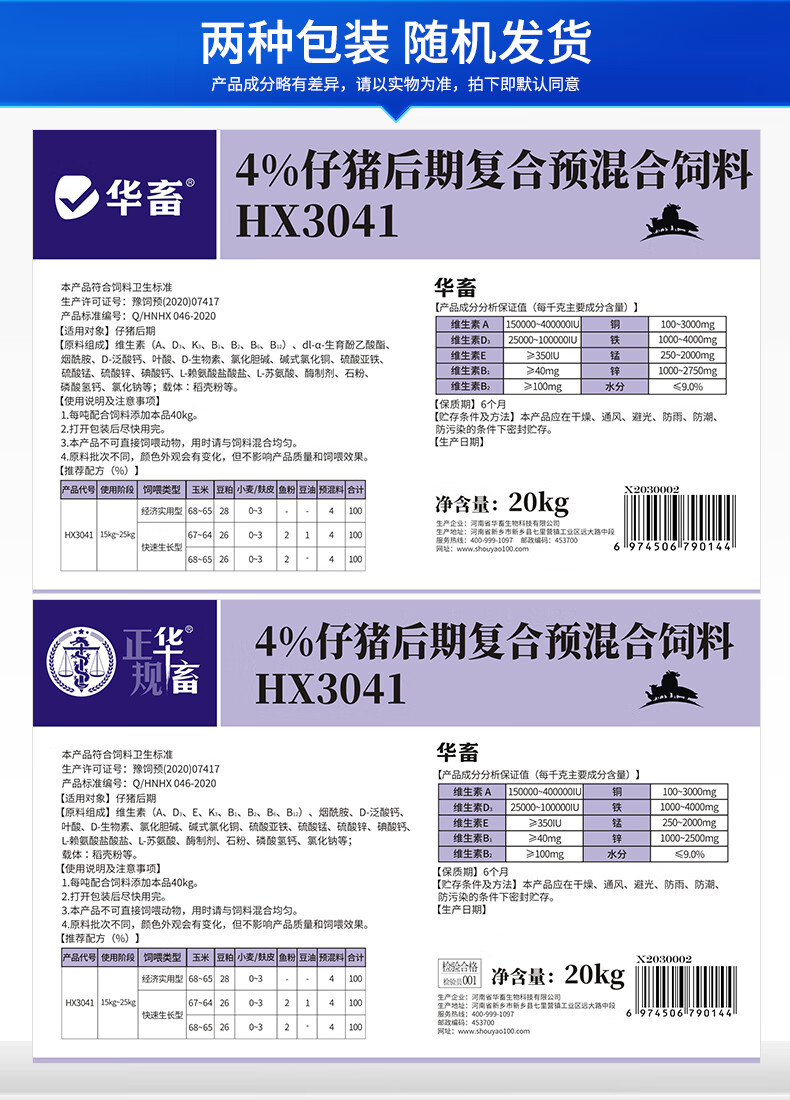Hua livestock pig feed growing pig premix large pig fattening pig feed concentrate piglet pregnant sow nursing sow 4% 20kg 1 bag medium pig premix feed