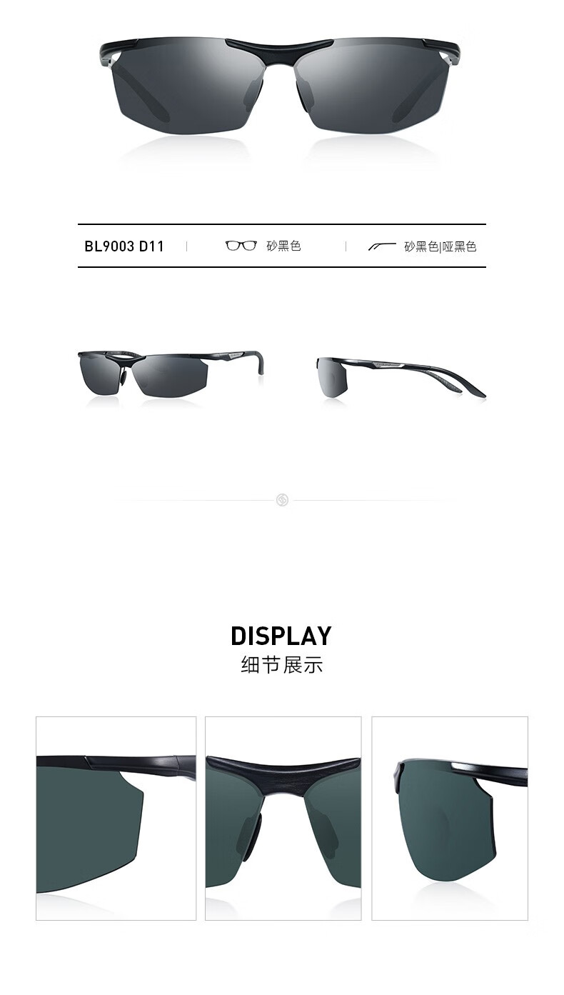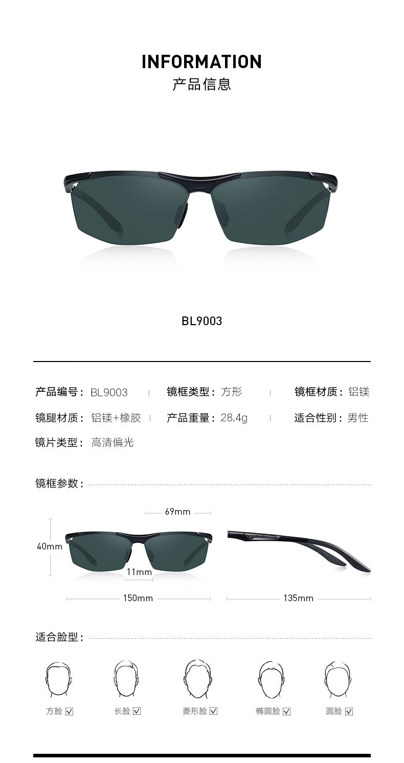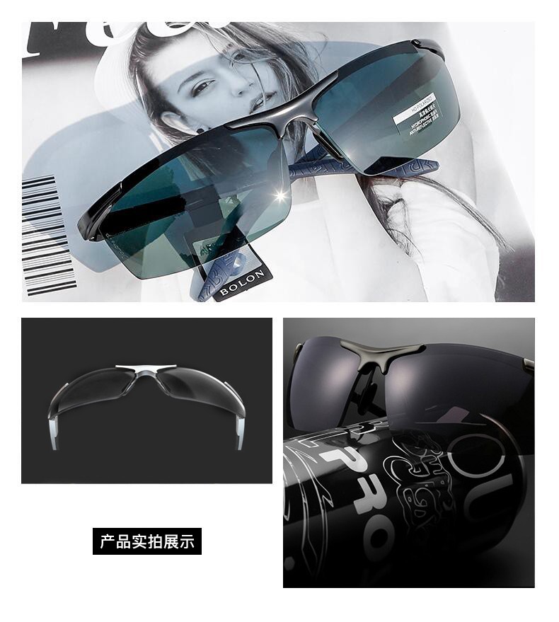 BOLON Tyrannosaurus sunglasses men's high-definition polarized glasses for drivers driving glasses BL2282 A09 black frame/green film polarizer