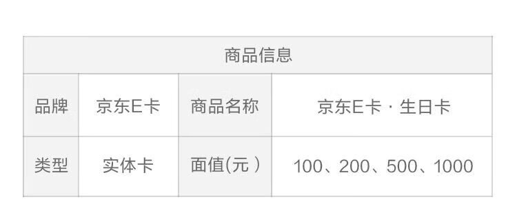 Jingdong E-Card Birthday Card 100 face value (physical card)