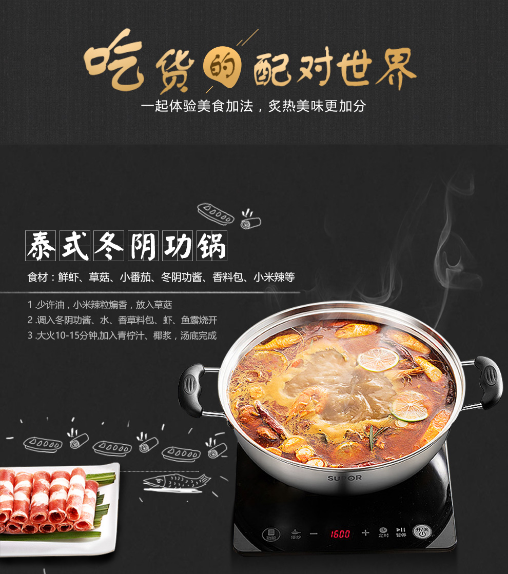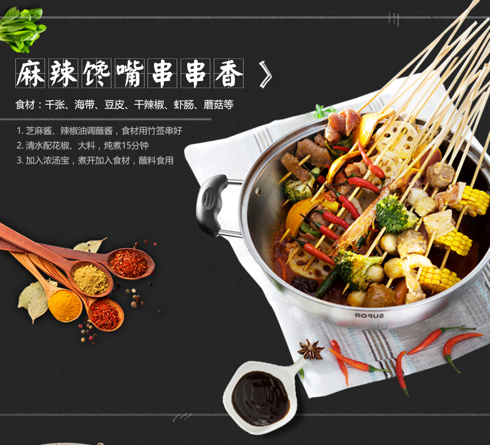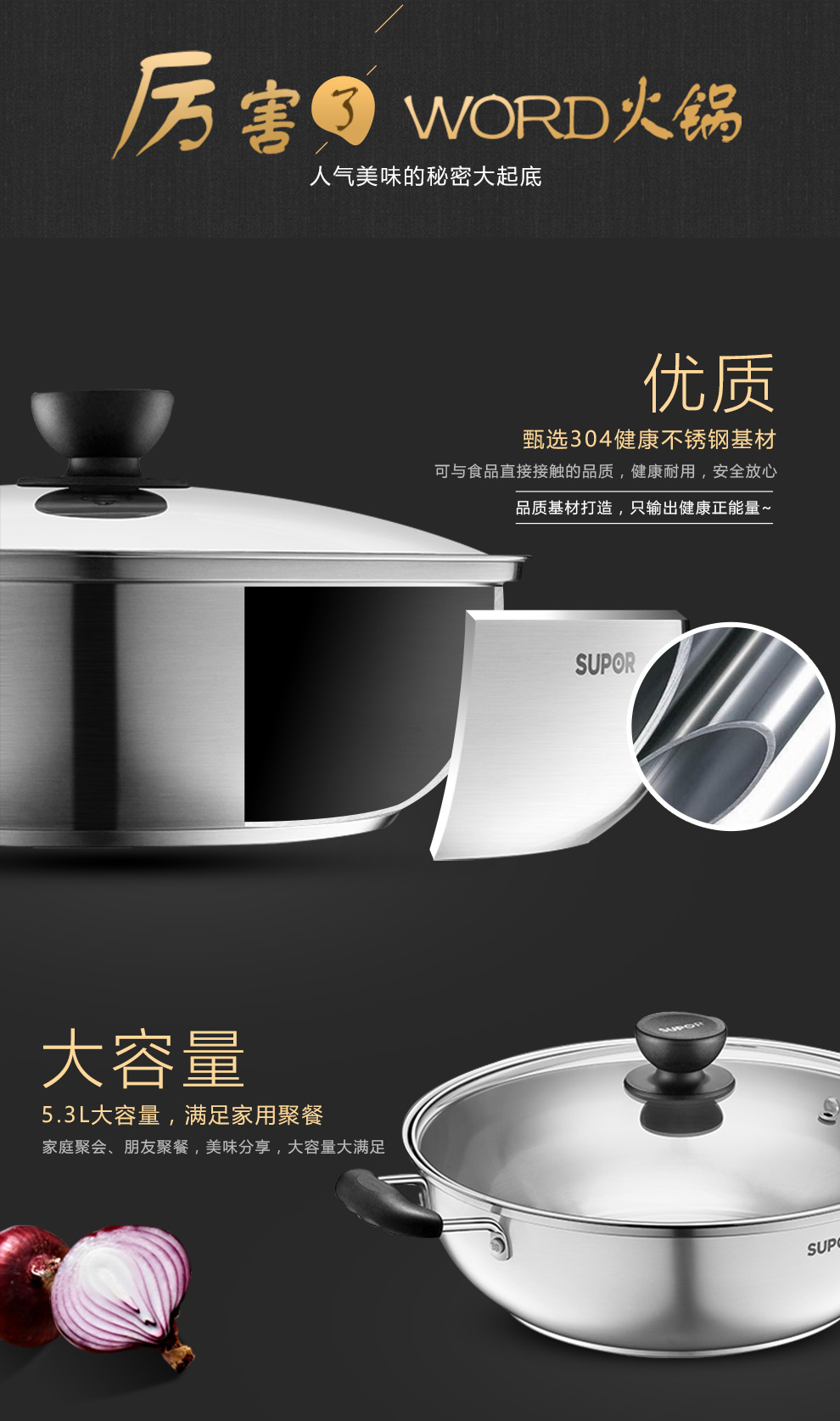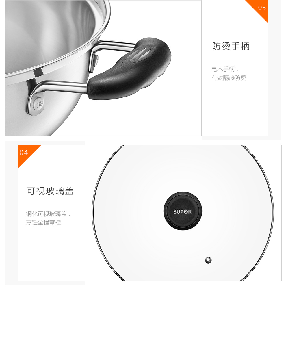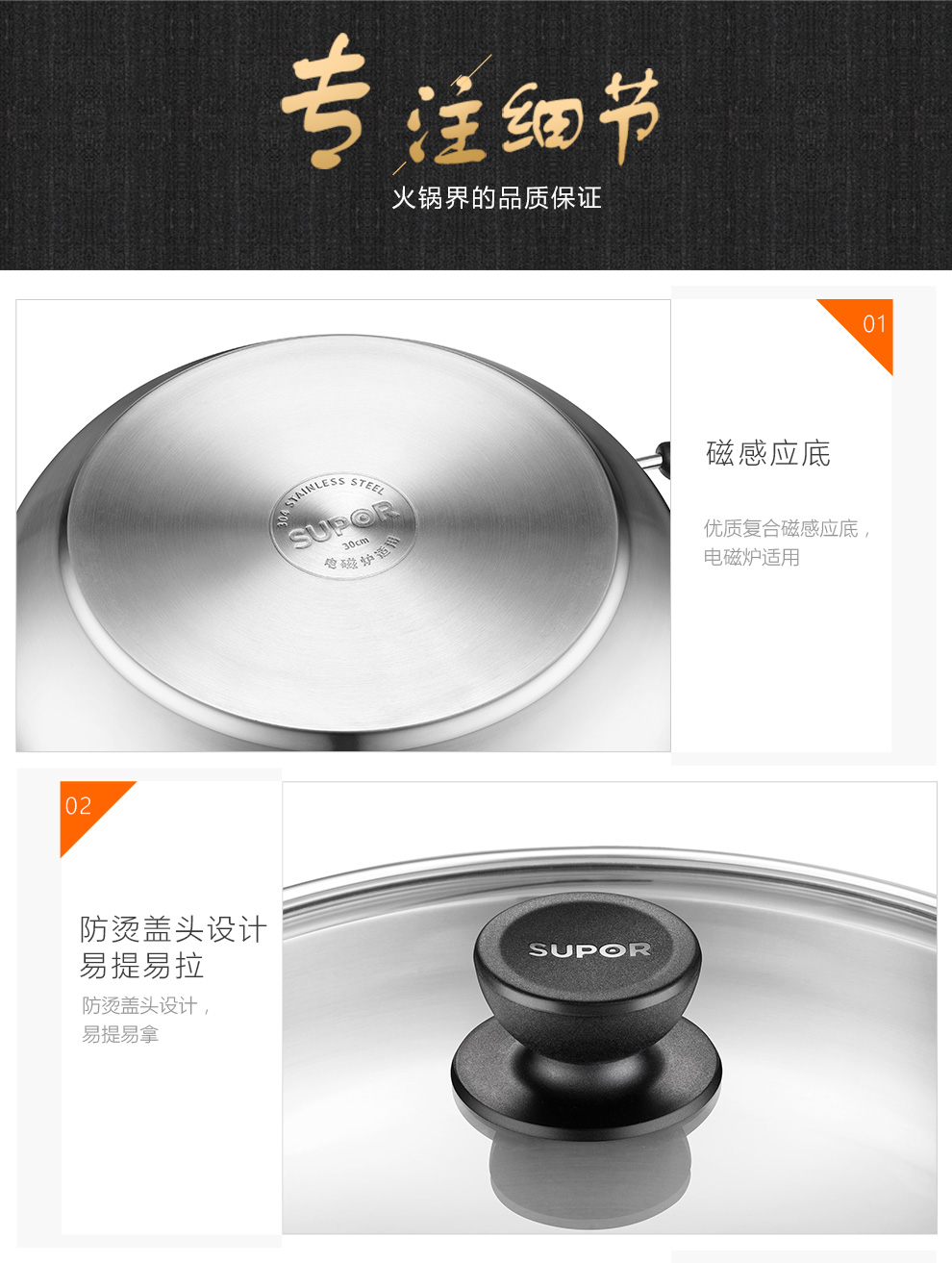 SUPOR hot pot 304 stainless steel double bottom shabu shabu clear soup pot 30cm large soup pot induction cooker hot pot