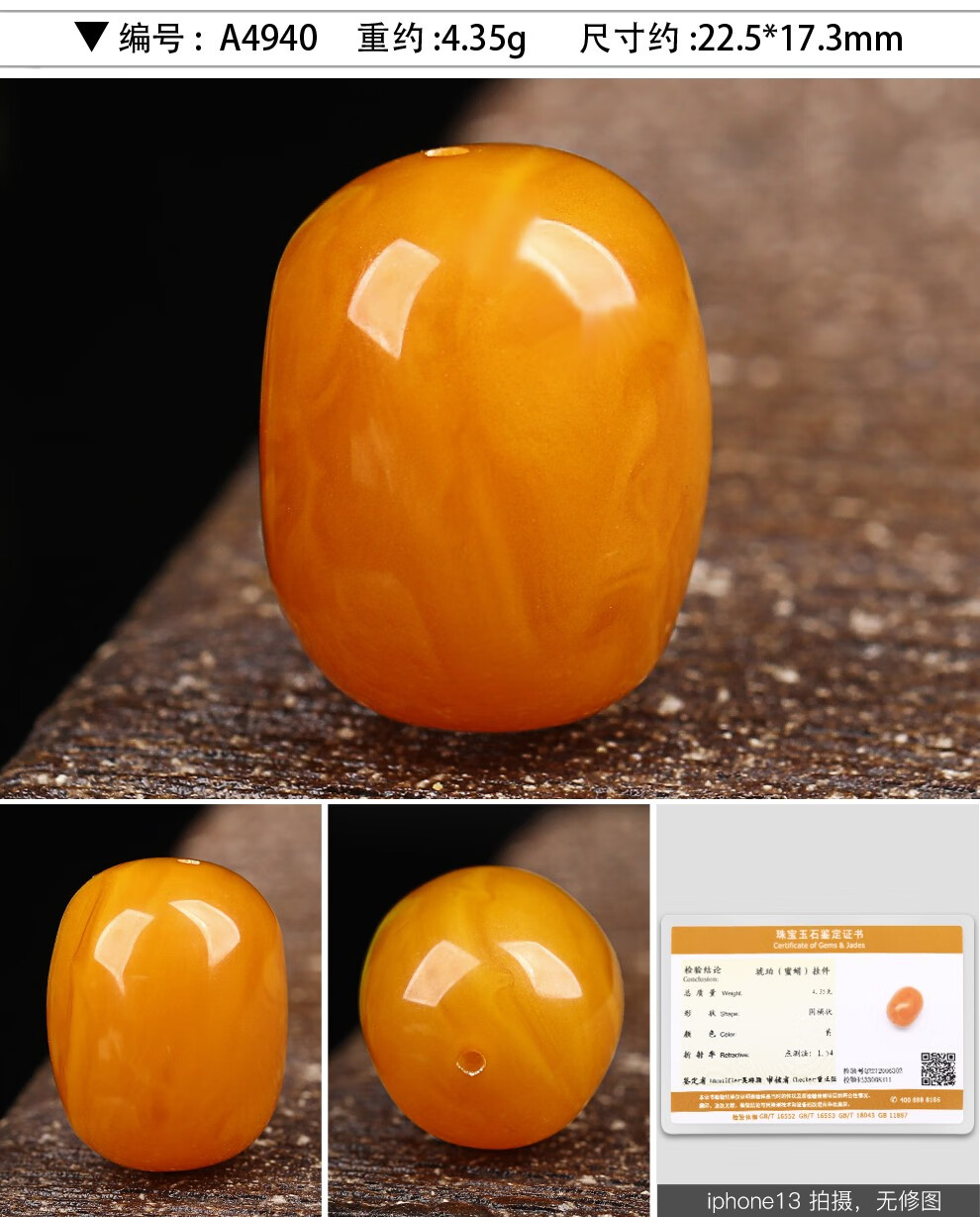 Ouchini natural amber beeswax beads Baltic chicken fat yellow single bead accessories accessories Baltic solitary product A8350 beeswax beads (19mm+)