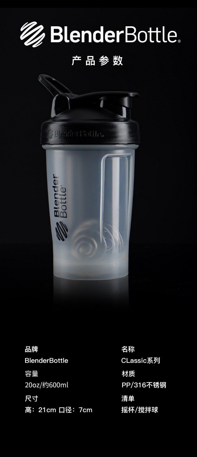 Blender Bottle Protein Powder Shaking Cup Sports Water Cup Large Capacity Plastic Cup with Scale Fitness Portable Stirring Men and Girls Classic V2 Gray 600ml