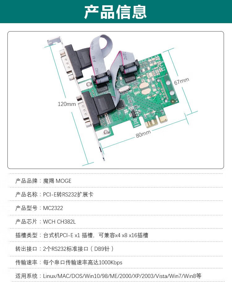 Capricorn MOGE PCI-E serial port card computer COM port expansion card pcie to RS232 industrial computer 9-pin adapter card MC2322