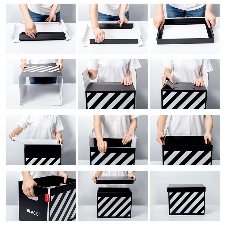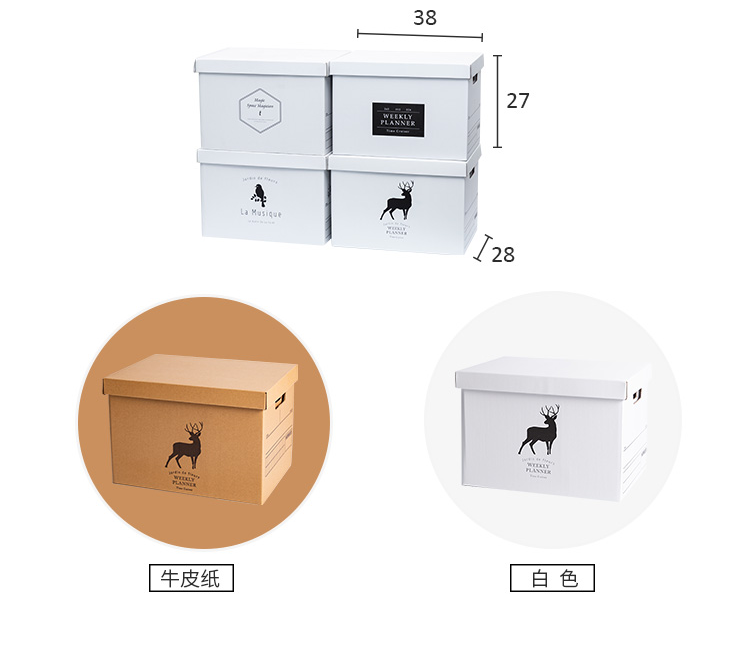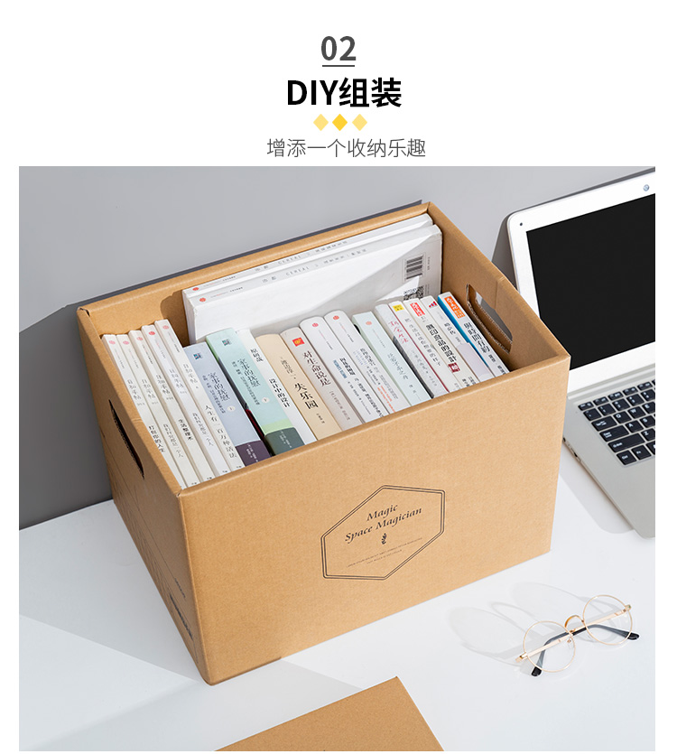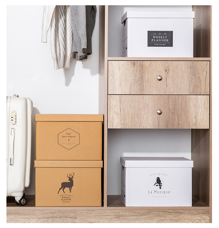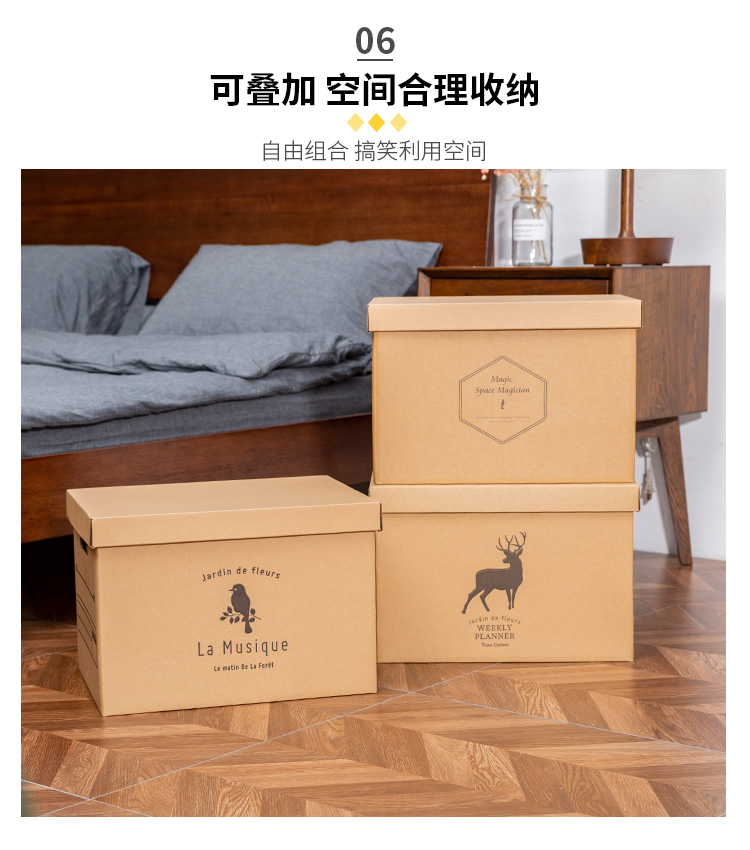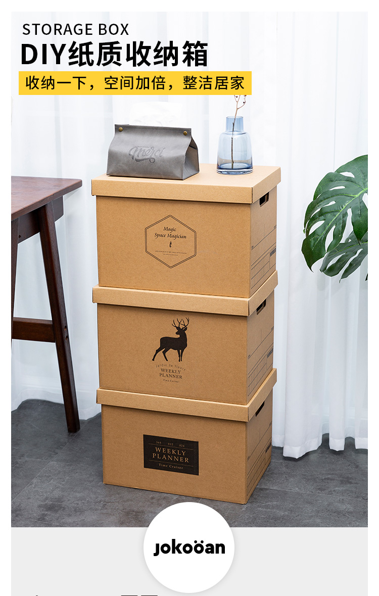 Ju cute paper storage box moving large office under desk bag storage with lid book box kraft paper storage box leaves