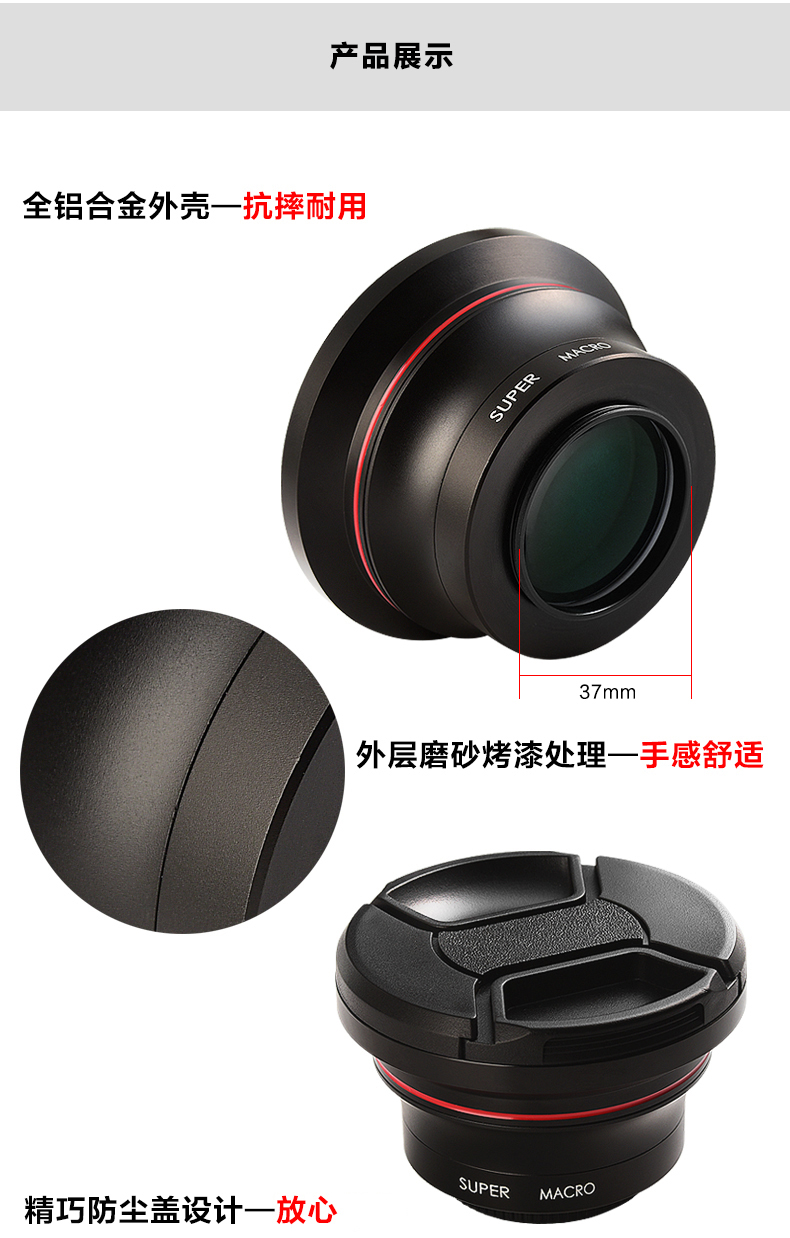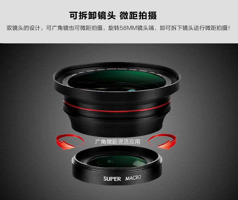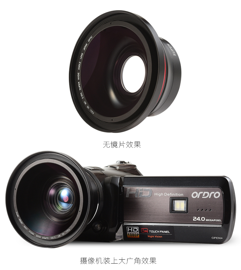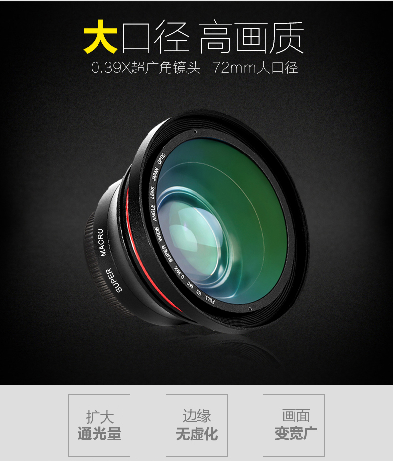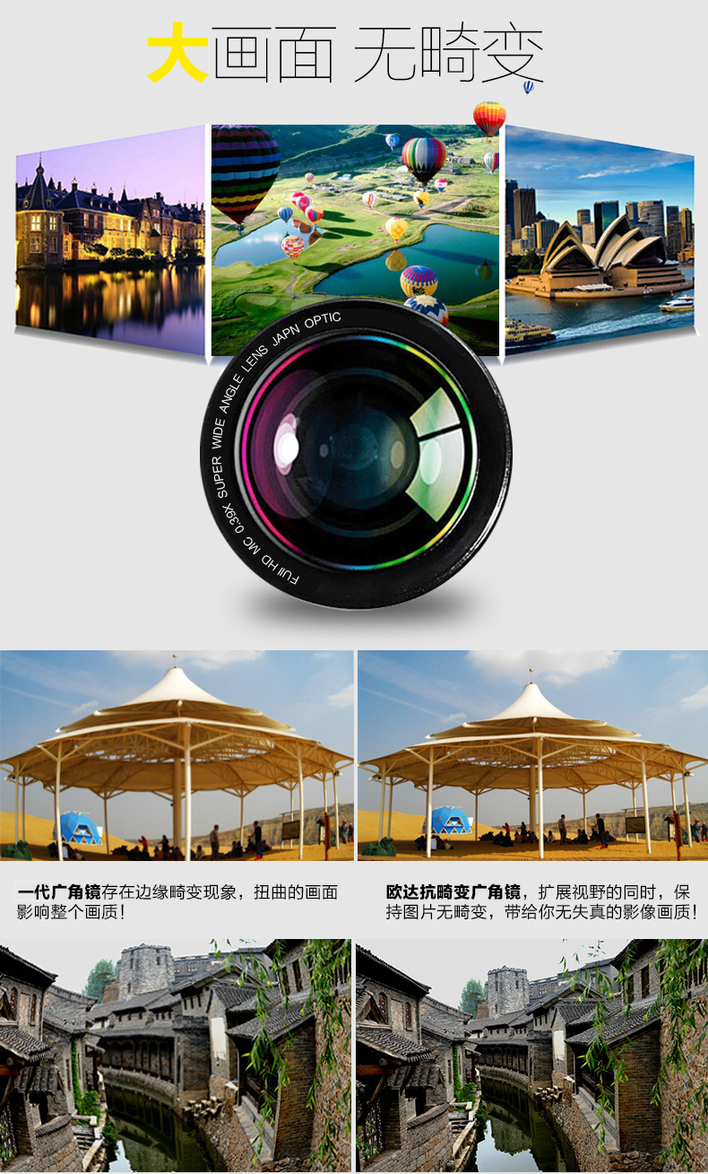 Ordro/Ouda 4K ultra-large wide-angle macro lens HD camera universal three-in-one set photo SLR external lens black